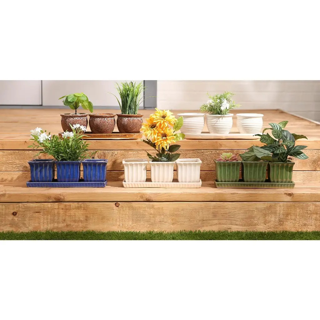 Growing herbs in your kitchen is easy and beautiful with this decorative ceramic pot set. This piece will become a favorite piece that will last for years to come.