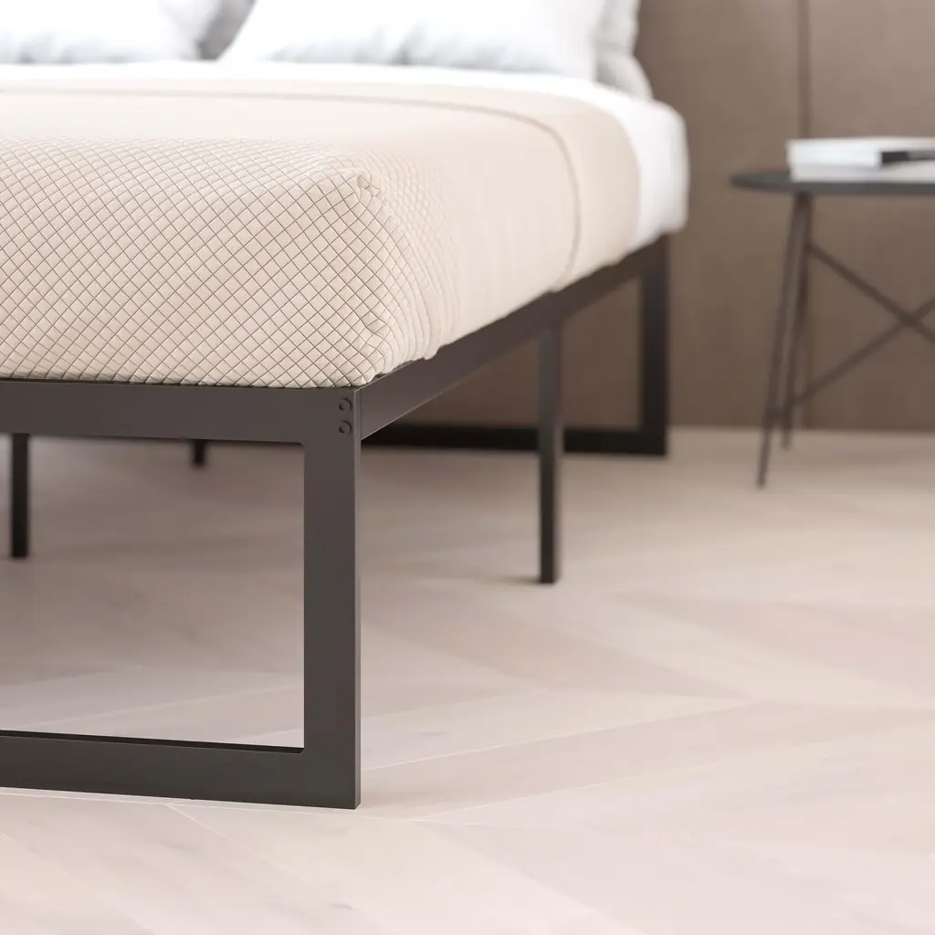 14 Inch Metal Platform Bed Frame - No Box Spring Needed With Steel Slat Support And Quick Lock Functionality
