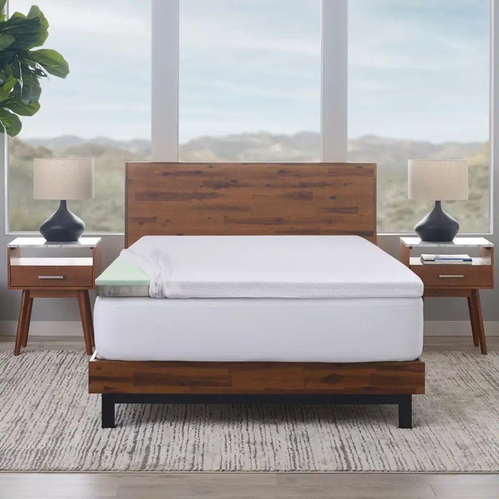 A great night's sleep should never be taken for granted and this bundled set including a 14 inch bed frame, 12 inch mattress and 2 inch memory foam mattress topper can be yours with the click of a button. Bedroom furniture is an investment so durability is always at the top of the must have list. This bed frame foundation with included mattress and memory foam topper features a 14" freestanding metal platform bed frame offering 12.5 inches of clearance for storage and ease of cleaning. Constructed from 19 gauge solid steel with reinforced metal screw construction this frame will hold up to 650 pounds. Solid steel slats hold the included 12" foam and pocket spring mattress and 2" memory foam topper without sagging and does not require a box spring. The lack of a headboard or footboard streamlines any sleep space and will lend vertical real estate to smaller bedrooms. This complete bed set bundle gives you an unparalleled sleeping experience. This medium-firm foam and pocket spring mattress features individually wrapped pocket spring coils for exceptional support and reduced motion transfer alleviating pressure points to help you stay asleep. As if that weren't enough to have you clicking the add to cart button, this bed frame and mattress set comes with a 2" memory foam topper to wrap you in cushioned comfort. The foam is CertiPUR-US Certified so it's free from heavy metals, phthalates, BPDE, formaldehyde and has reduced VOCs. Arriving compressed and boxed for ease of movement, the mattress and topper will fully expand with 48 to 72 hours. Live your best life when you wake up relaxed and refreshed on this 3 piece complete bed set.