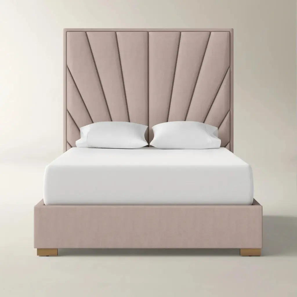 A Statement in Modern Elegance. Elevate your bedroom with the Adriana Bed in Royale Sand, a piece where contemporary design meets timeless sophistication. This bed serves as the perfect canvas for luxurious living, blending seamless style with exceptional comfort. Featuring a striking fan-patterned headboard meticulously upholstered to exude refined artistry, the Adriana bed transforms any space into a sanctuary of elegance and serenity.Cusiom Orders: Custom furniture is manufaciured especially for you, which is why we do not accept cancellations, exchanges, or return.ZG Exclusive