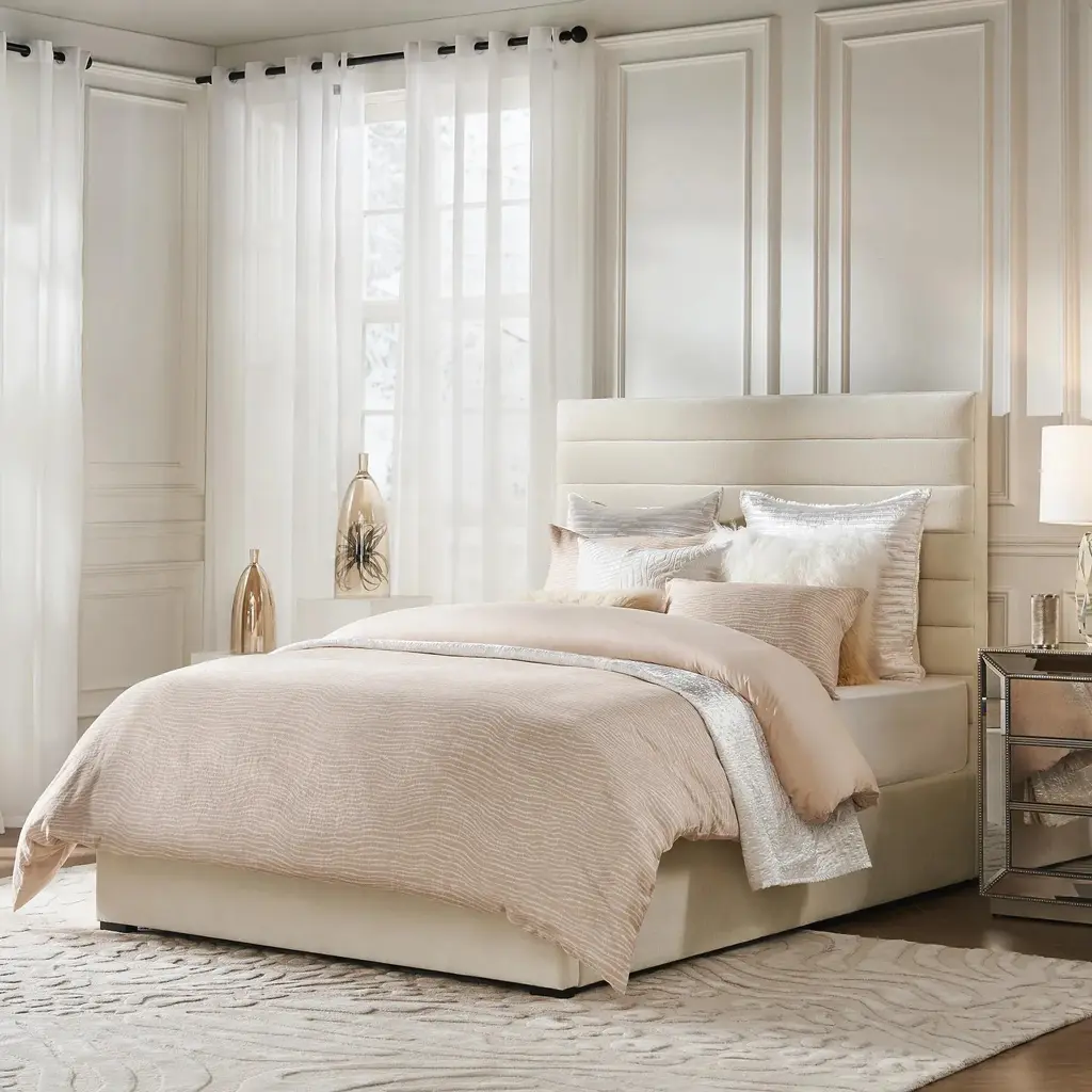 A Harmonious Blend of Comfort and Elegance. Transform your bedroom into a luxurious retreat with the refined Alicia Bed. Designed to redefine sophistication, this masterpiece combines unparalleled comfort with an artistic aesthetic, making it the centerpiece of any room. Each element of the headboard is a testament to craftsmanship, with individually sculpted channels that create a striking geometric harmony, embodying both style and opulence.ZG ExclusiveCusiom Orders: Custom furniture is manufaciured especially for you, which is why we do not accept cancellations, exchanges, or return.