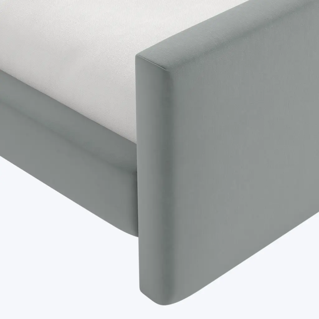 Elevate the ambiance of your bedroom or guest room with the Alta Platform Bed, a statement piece that exudes both grandeur and stability. Featuring a tall, commanding headboard and footboard, this sturdy bed frame ensures a restful night’s sleep while making a bold design impact. Alta’s sleek, clean lines harmonize effortlessly with a range of interior styles, from cozy minimalism to sophisticated modern spaces. Personalize your bed with a choice of luxurious fabrics, including rich velvets, neutral linens, and inviting textured bouclé. Expertly crafted in Illinois, this custom-made upholstered bed includes a durable wooden slat system that integrates seamlessly with the metal frame, providing support without the need for a box spring. Experience the perfect blend of comfort, craftsmanship, and timeless design.