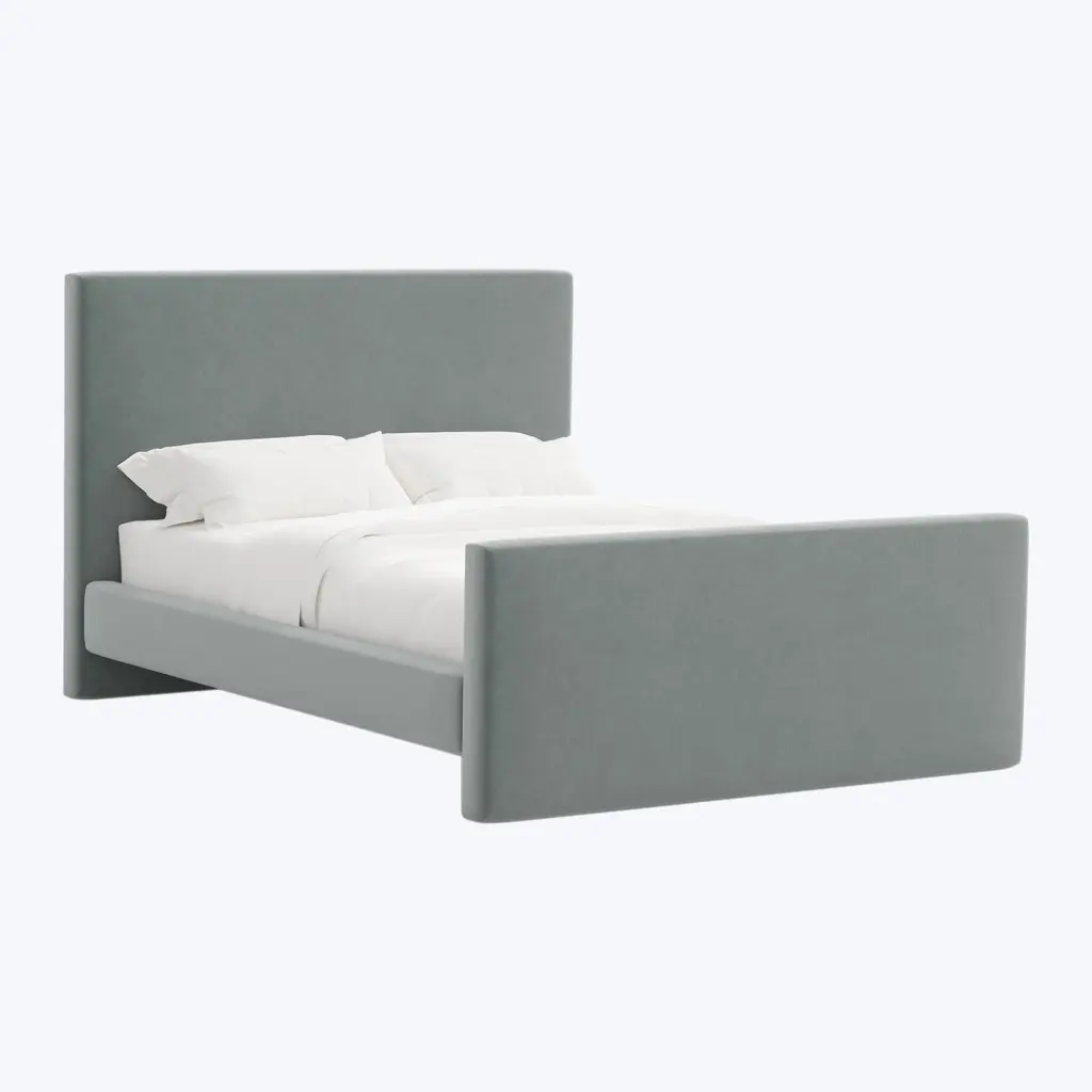 Elevate the ambiance of your bedroom or guest room with the Alta Platform Bed, a statement piece that exudes both grandeur and stability. Featuring a tall, commanding headboard and footboard, this sturdy bed frame ensures a restful night’s sleep while making a bold design impact. Alta’s sleek, clean lines harmonize effortlessly with a range of interior styles, from cozy minimalism to sophisticated modern spaces. Personalize your bed with a choice of luxurious fabrics, including rich velvets, neutral linens, and inviting textured bouclé. Expertly crafted in Illinois, this custom-made upholstered bed includes a durable wooden slat system that integrates seamlessly with the metal frame, providing support without the need for a box spring. Experience the perfect blend of comfort, craftsmanship, and timeless design.
