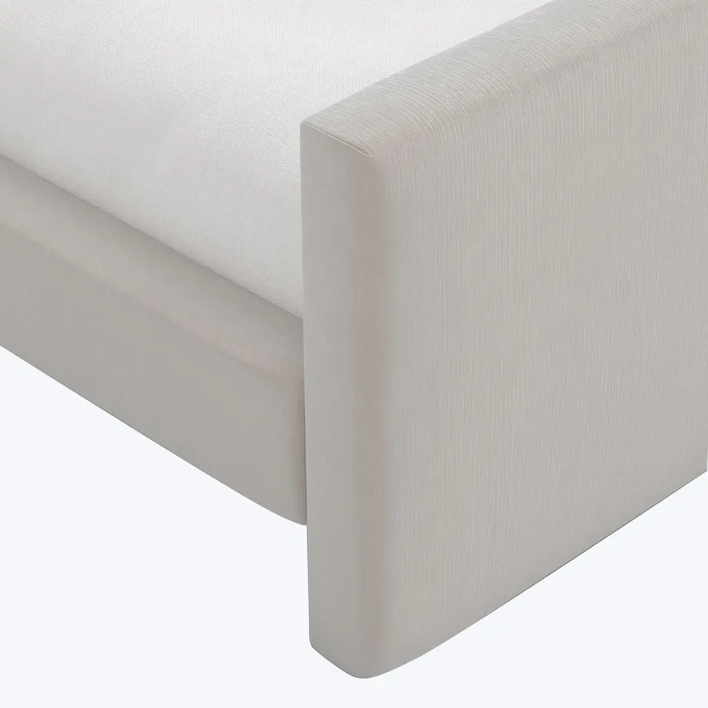 Elevate the ambiance of your bedroom or guest room with the Alta Platform Bed, a statement piece that exudes both grandeur and stability. Featuring a tall, commanding headboard and footboard, this sturdy bed frame ensures a restful night’s sleep while making a bold design impact. Alta’s sleek, clean lines harmonize effortlessly with a range of interior styles, from cozy minimalism to sophisticated modern spaces. Personalize your bed with a choice of luxurious fabrics, including rich velvets, neutral linens, and inviting textured bouclé. Expertly crafted in Illinois, this custom-made upholstered bed includes a durable wooden slat system that integrates seamlessly with the metal frame, providing support without the need for a box spring. Experience the perfect blend of comfort, craftsmanship, and timeless design.
