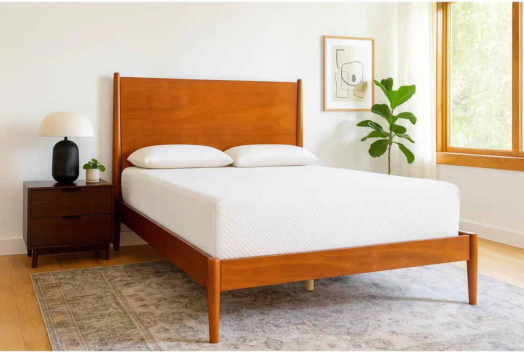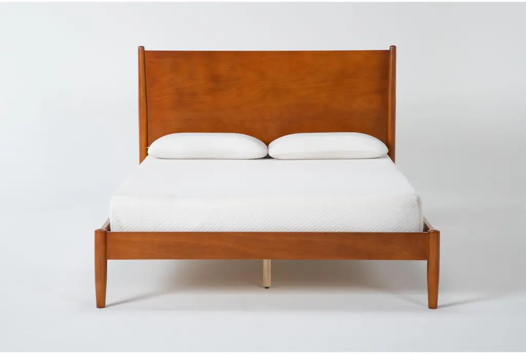 Alton Cherry Ii King Brown Wood Platform Bed & Headboard | Adjustable Base Compatible