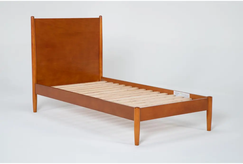 Mid-century modern, but make it kid-friendly. Our Alton Cherry twin bed boasts a sleek profile, tapered legs and a versatile look that complements various styles. Solid hardwood and veneer construction reinforces sturdiness, while a cherry finish enhances the warm, casual charm.