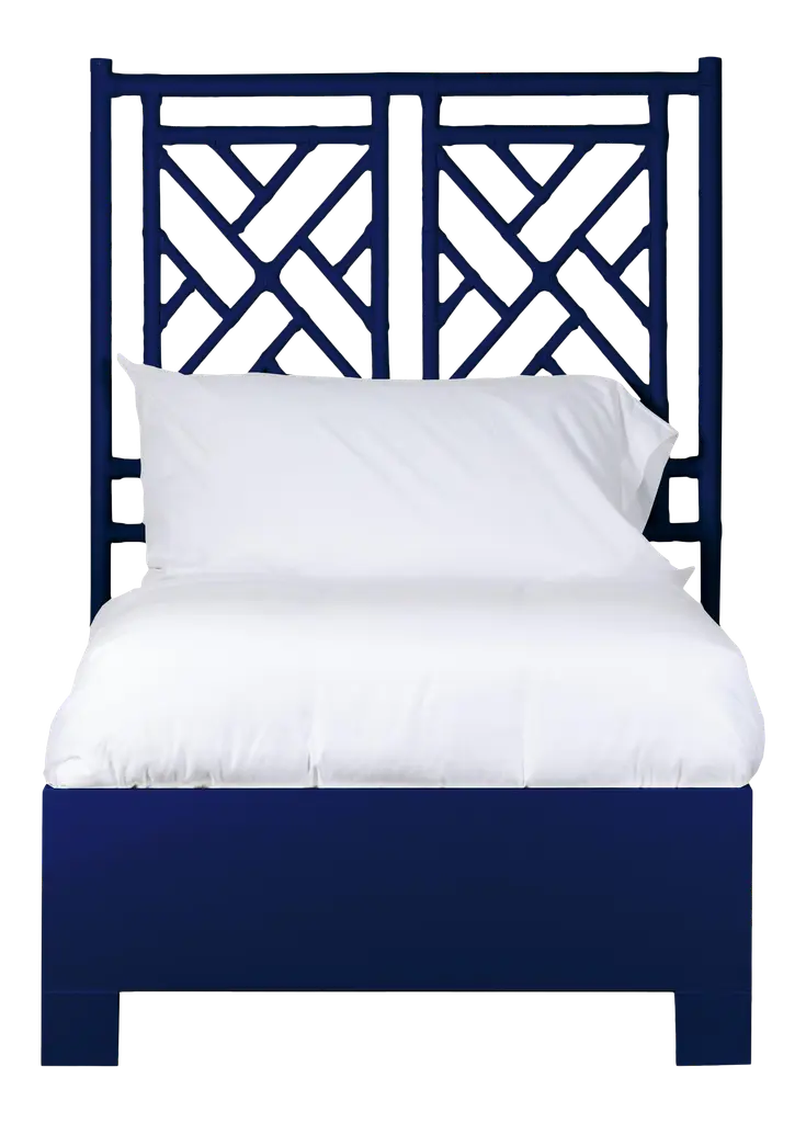 The Ananias Platform Bed from David Francis Furniture is a striking statement piece that brings modern elegance to any bedroom! This stunning bed features a handcrafted rattan headboard, wrapped with leather bindings for contrast and added durability. The solid maple bed frame, made in the USA, provides a sturdy foundation and requires a mattress only. Designed to bring a modern and contemporary feel to any bedroom, the Ananias Bed is available in multiple sizes and colors, allowing you to create a bed tailored to your style. Each bed is custom-made and finished to order, ensuring a one-of-a-kind piece that transforms your space with timeless beauty. Please allow time for shipping.