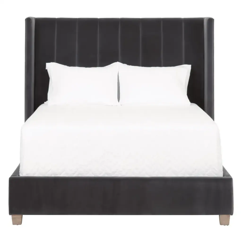 A simple yet elegant look gives the Aspen Upholstered Platform Bed a modern yet timeless feel. The subtle vertical channel tufting of the low headboard and simple, solid wood legs are a nod to a retro 70's look, made modern by the graceful, curved wings that sweep seamlessly into the side- and foot-panels for a completely unique platform design. Available in Queen, King and California King sizes in all the trend worthy colors from Evergreen to Ash Rose to Anthracite Black, the Aspen Bed Set is the perfect centerpiece to your master suite, guest room, or teen's room.