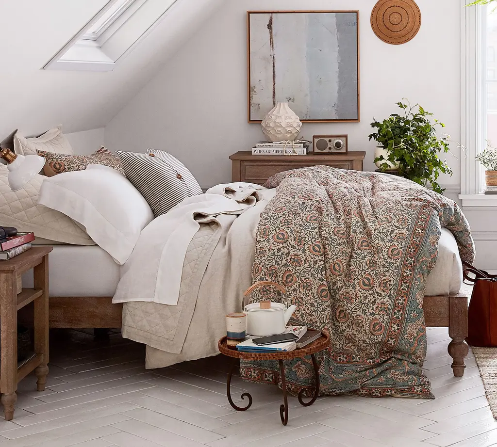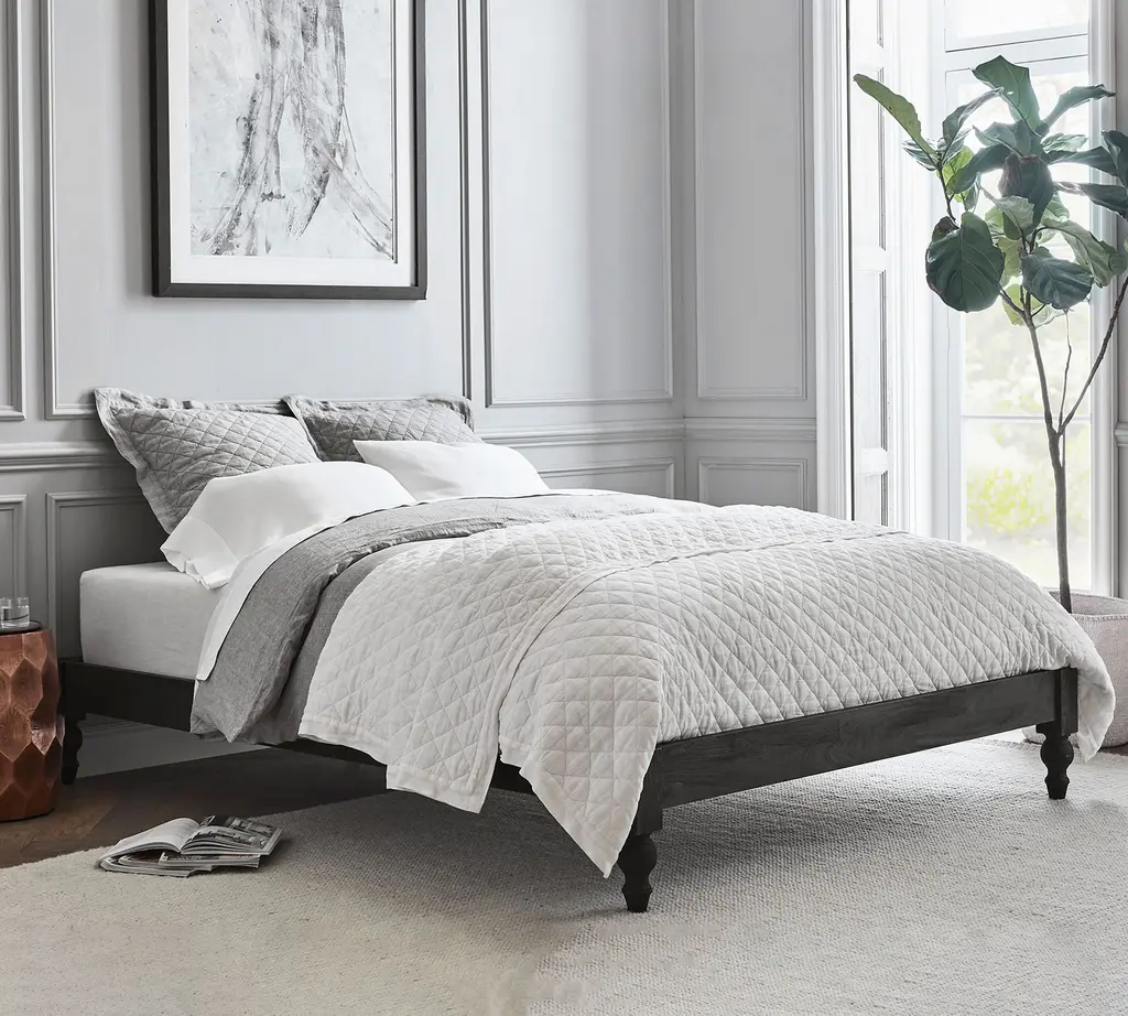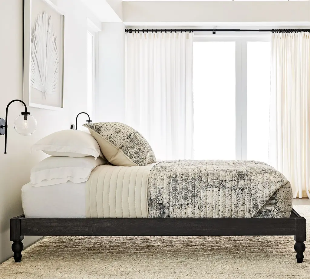 Ditch the headboard and box spring and pile up the pillows to make your own relaxing retreat. The Astoria Platform Bed has a low profile that feels comfy and casual, with a touch of romance in the turned legs. The finish highlights the natural beauty of the mango wood’s grain and hue, which vary slightly from piece to piece.