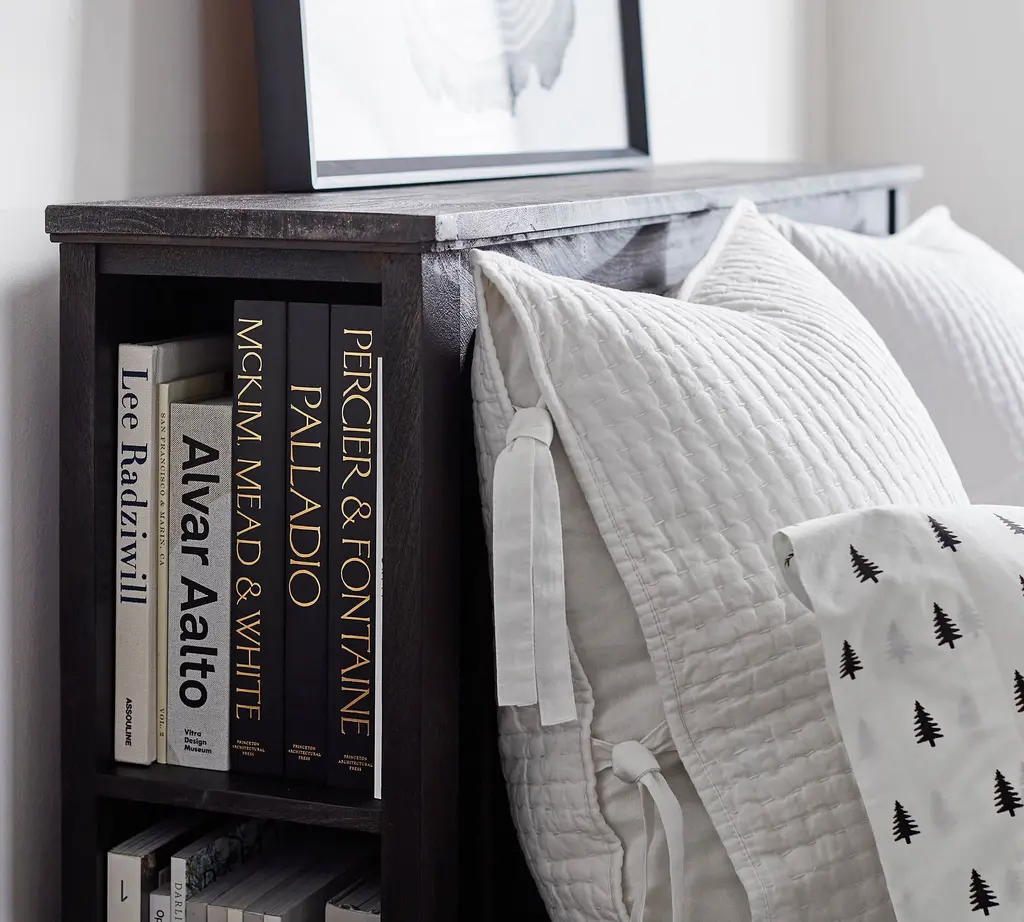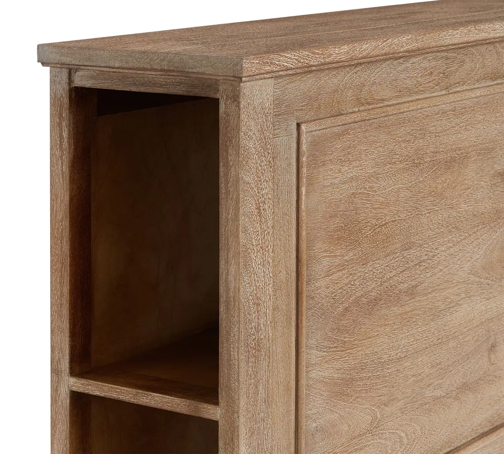 This bed fits global style into a compact footprint. The Astoria’s platform has a low profile that feels comfy and casual, with a touch of romance in the turned legs. The versatile headboard provides a sheltering backdrop – making this your cozy retreat – plus storage with easy access in the side cubbies. The finish highlights the natural beauty of the mango wood’s grain and hue, which vary slightly from piece to piece.