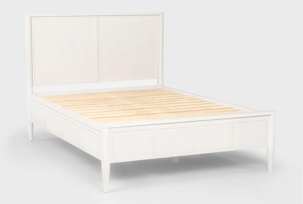 Introducing the Austen White Full Wood Panel Bed, a perfect addition to a kids' bedroom. This traditional bed showcases a timeless design with its clean lines and soft white color, providing a neutral and light ambiance to any sleeping room. Crafted with oak veneer and solid rubberwood, this bed is built to last and offers a sturdy platform base for comfort and support.