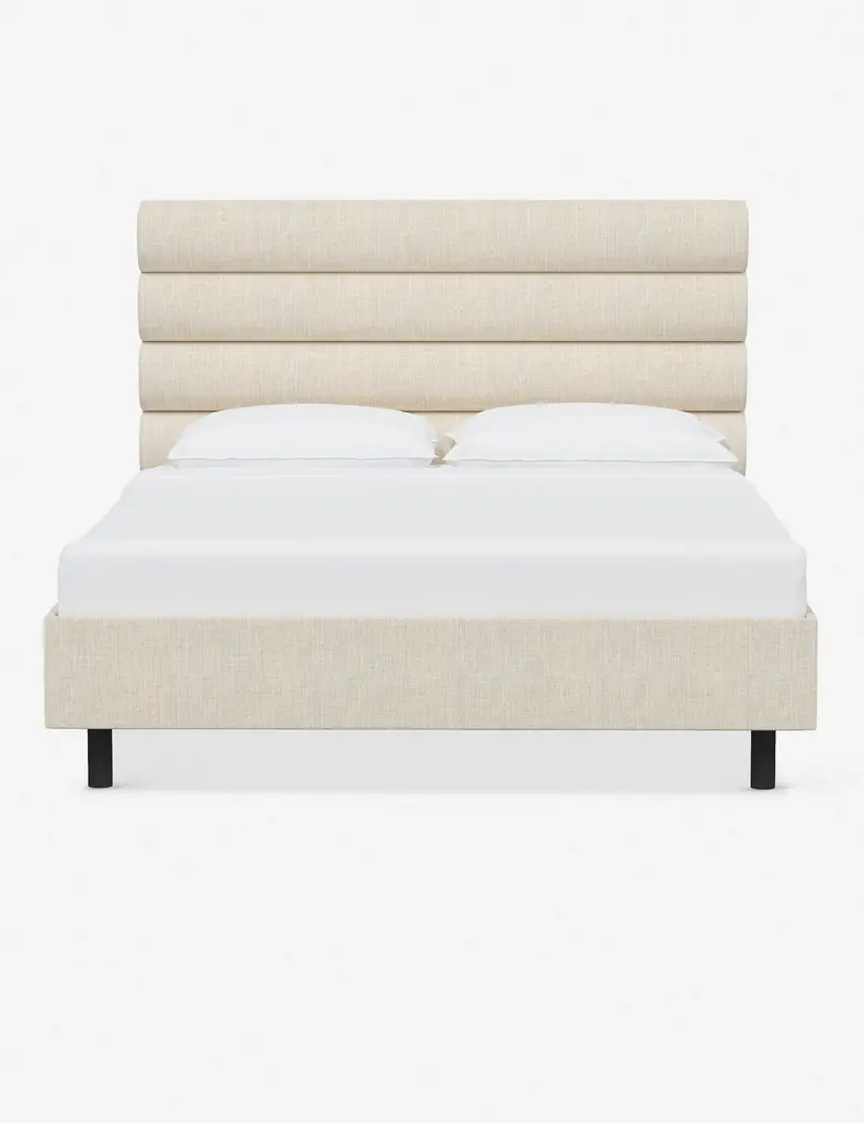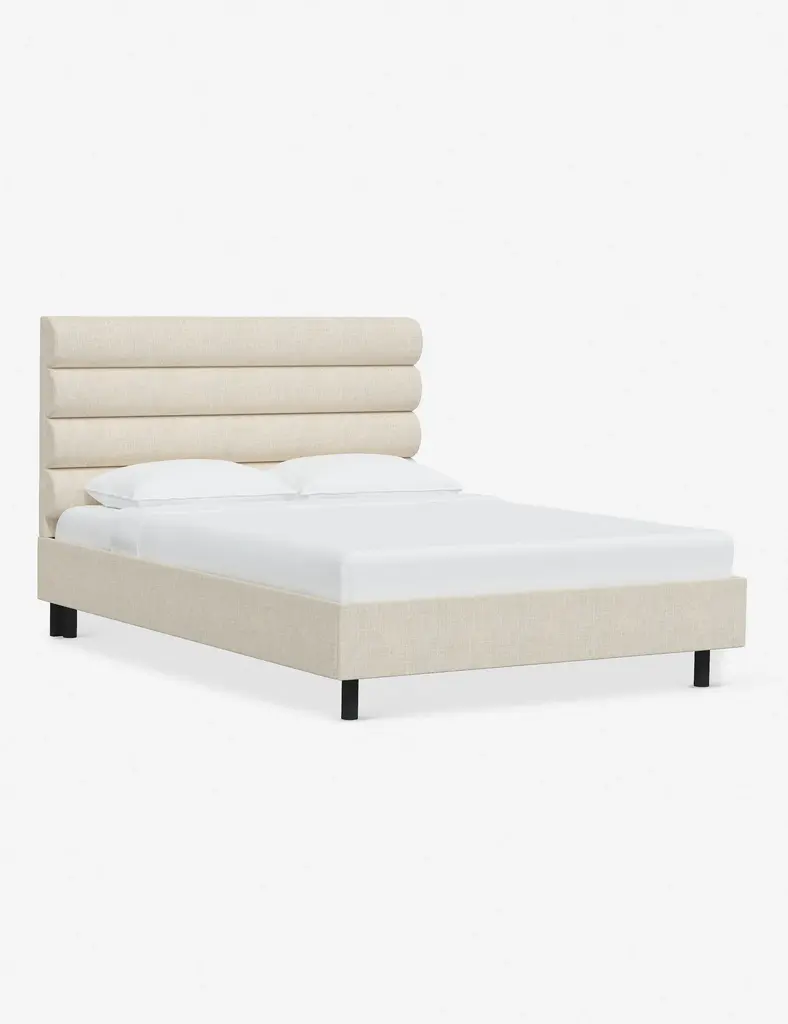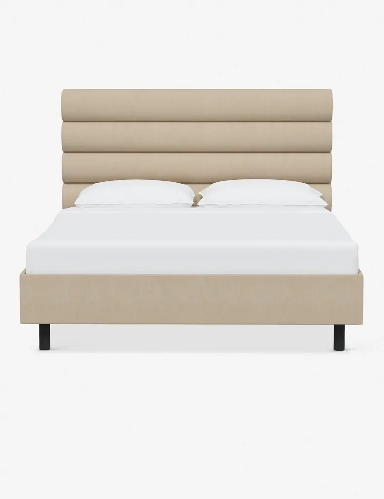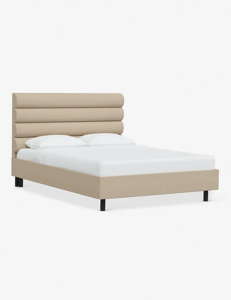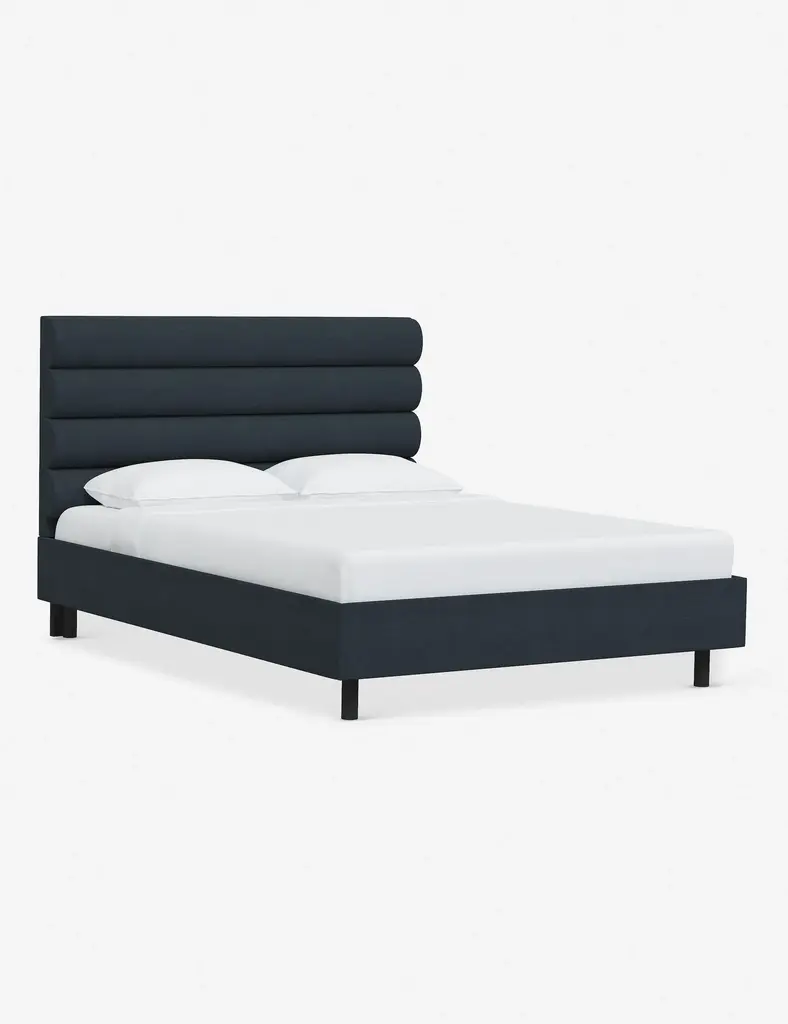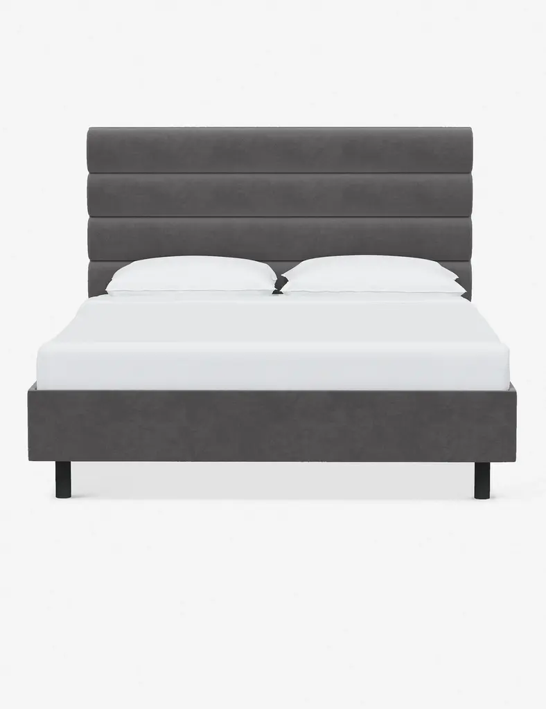This platform bed features striking horizontal channel tufting along its headboard, adding clean visual texture to your bedroom wall. With its tailored lines, use this bed frame as the focal point in a collected bedroom aesthetic.