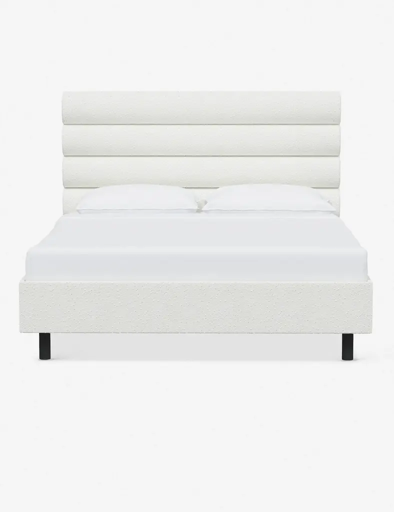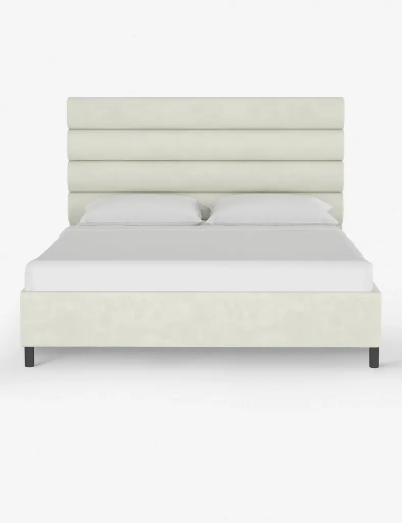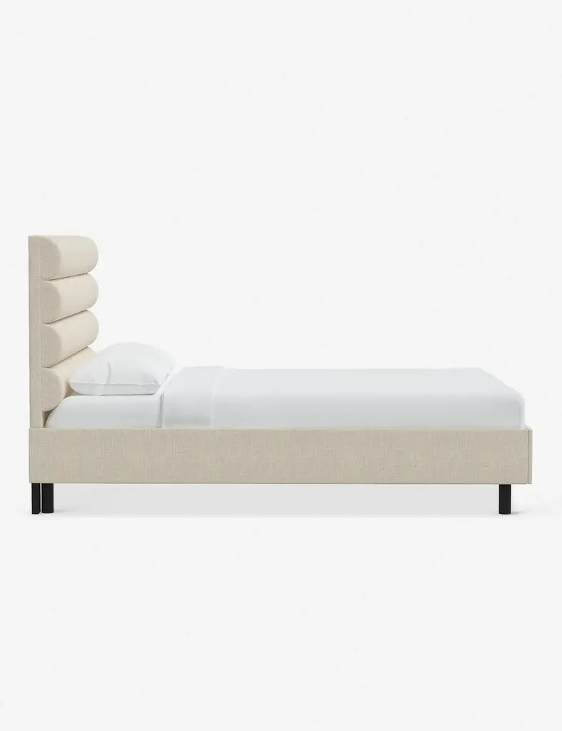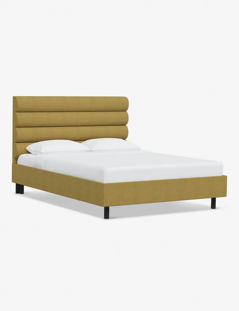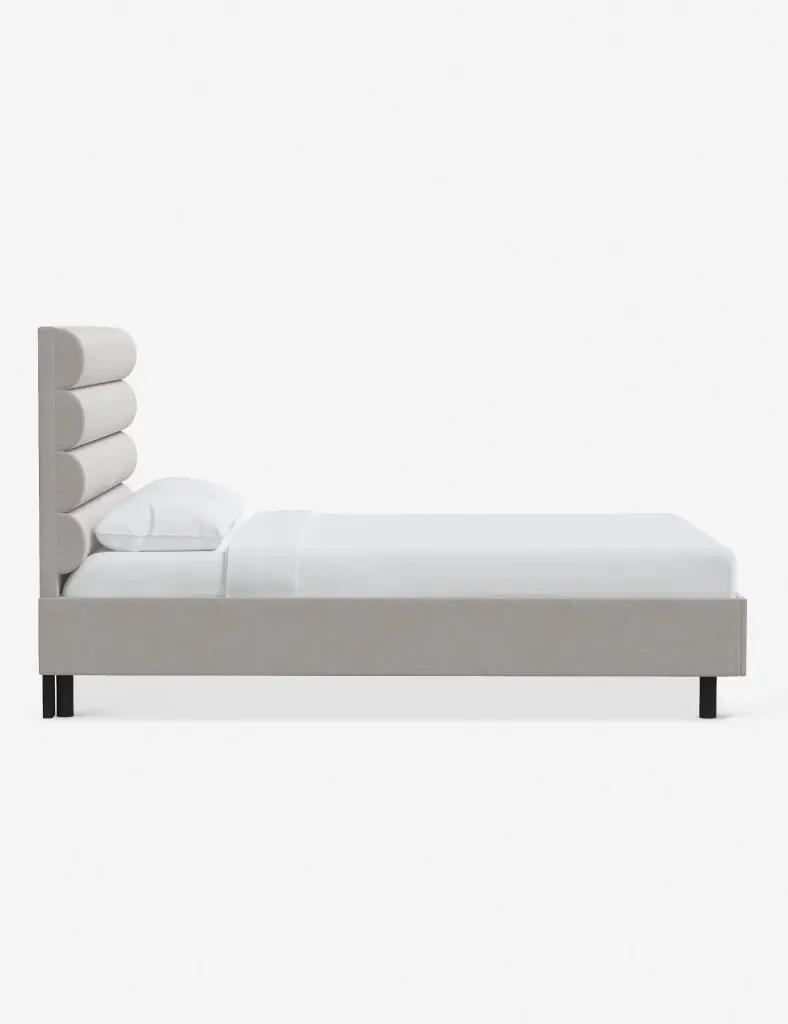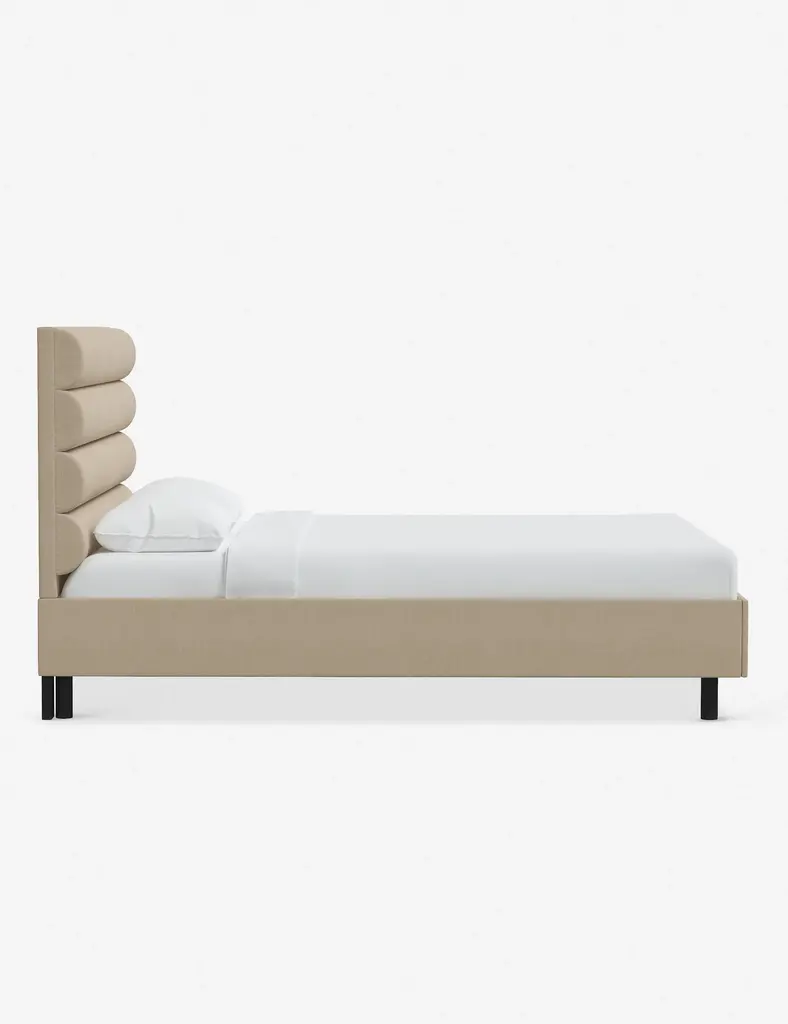 This platform bed features striking horizontal channel tufting along its headboard, adding clean visual texture to your bedroom wall. With its tailored lines, use this bed frame as the focal point in a collected bedroom aesthetic.