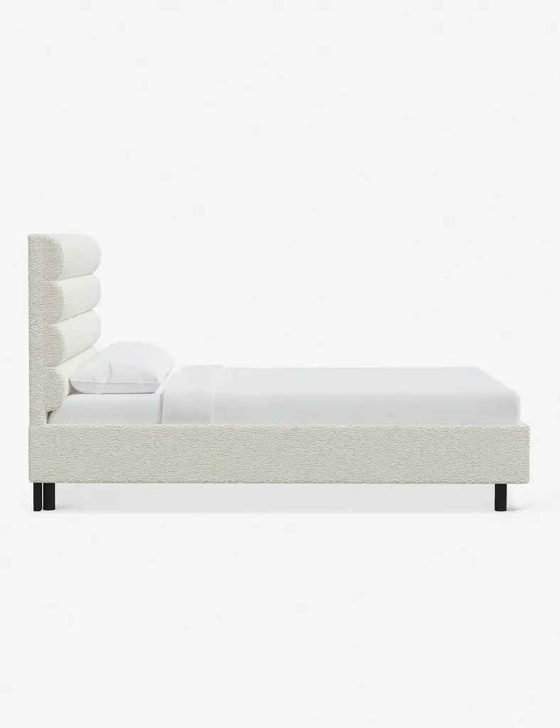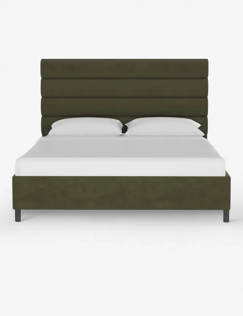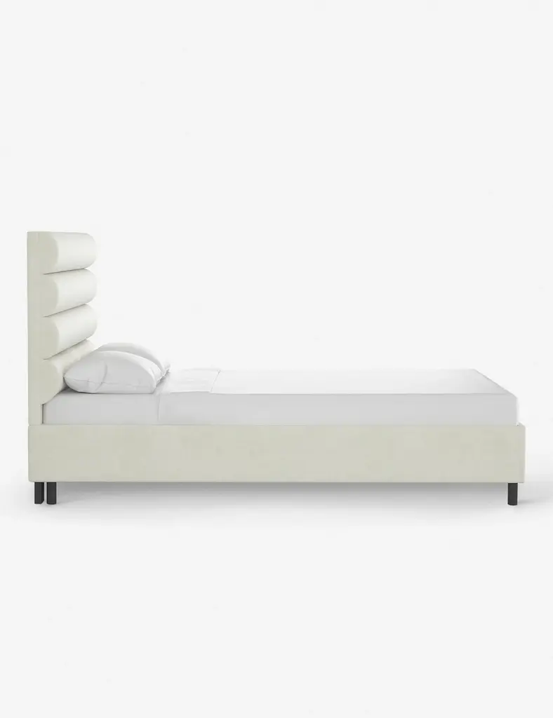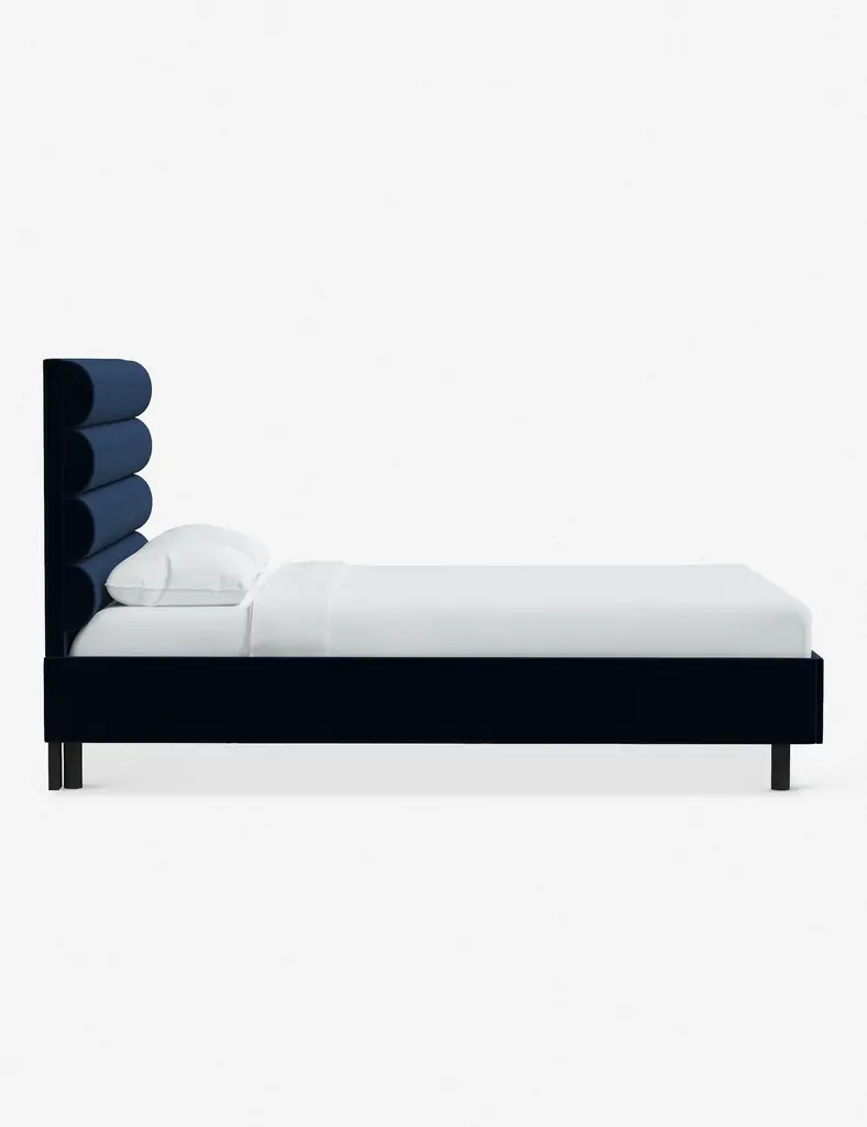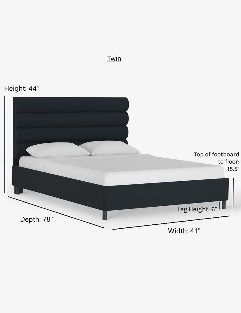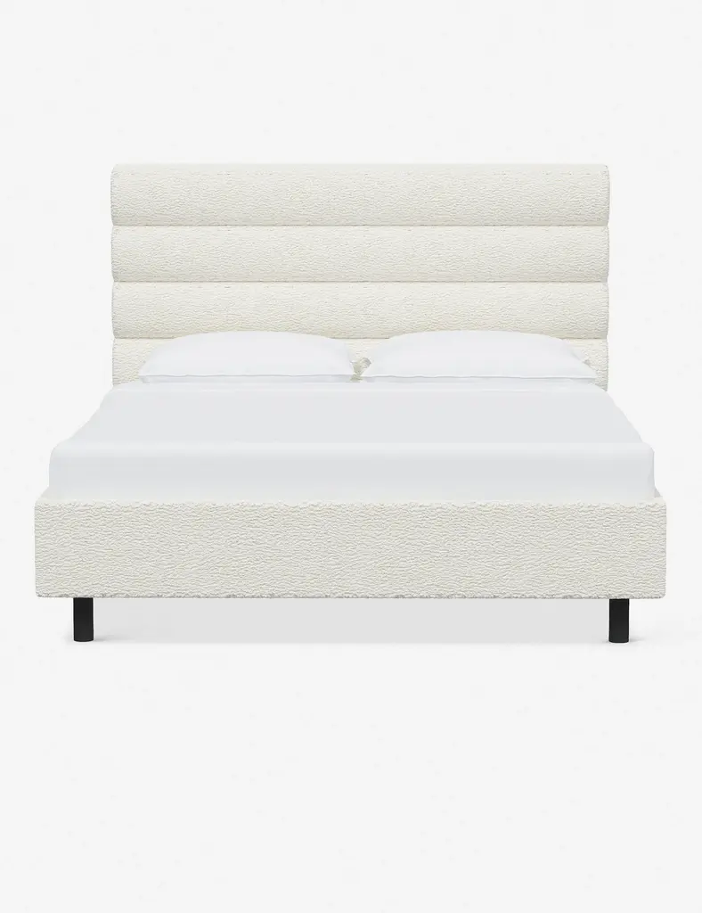 This platform bed features striking horizontal channel tufting along its headboard, adding clean visual texture to your bedroom wall. With its tailored lines, use this bed frame as the focal point in a collected bedroom aesthetic.