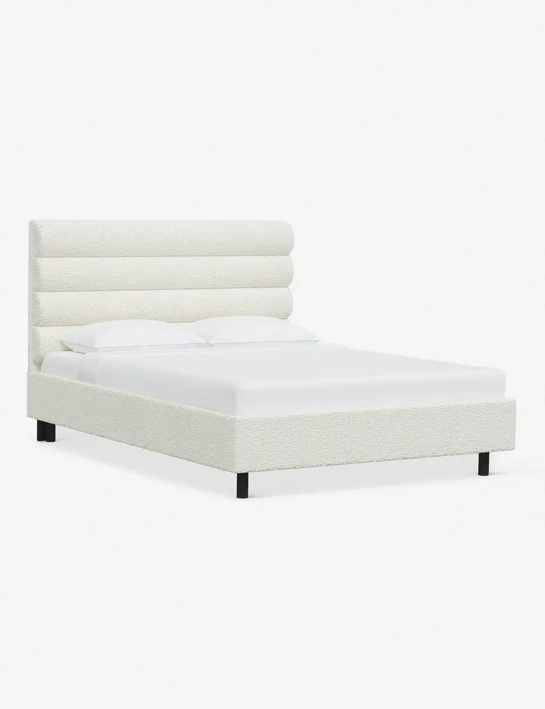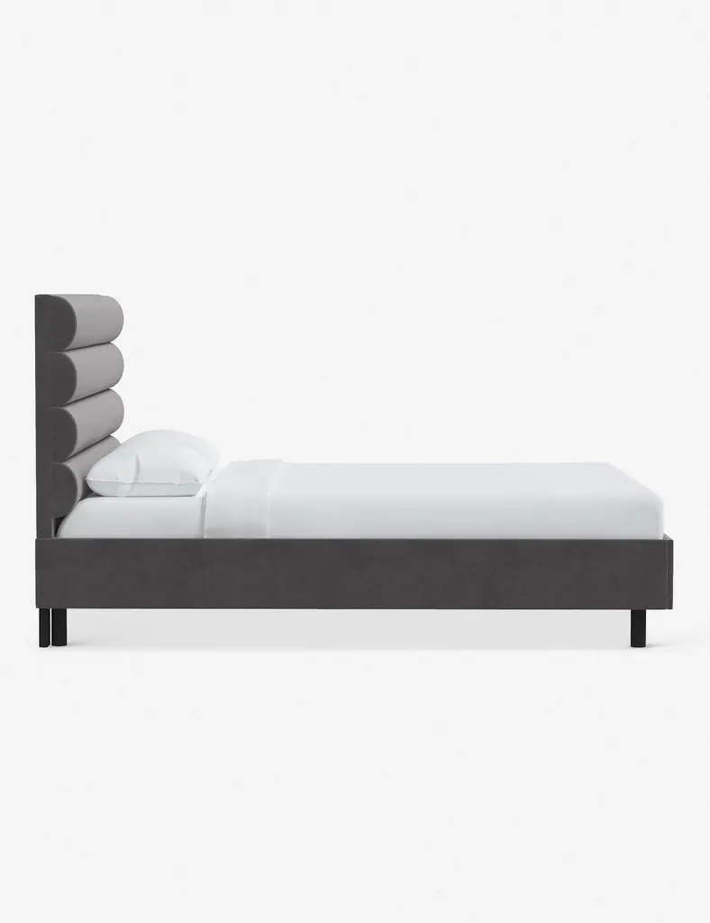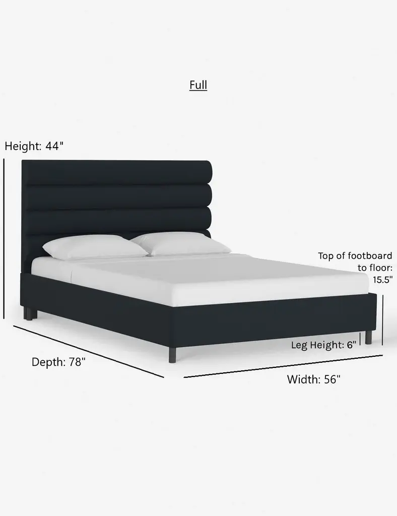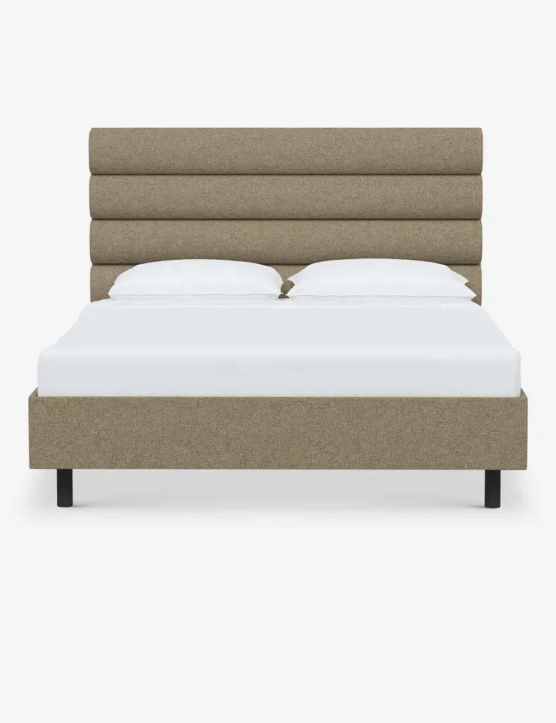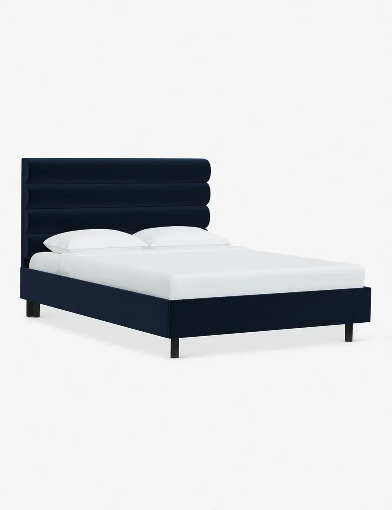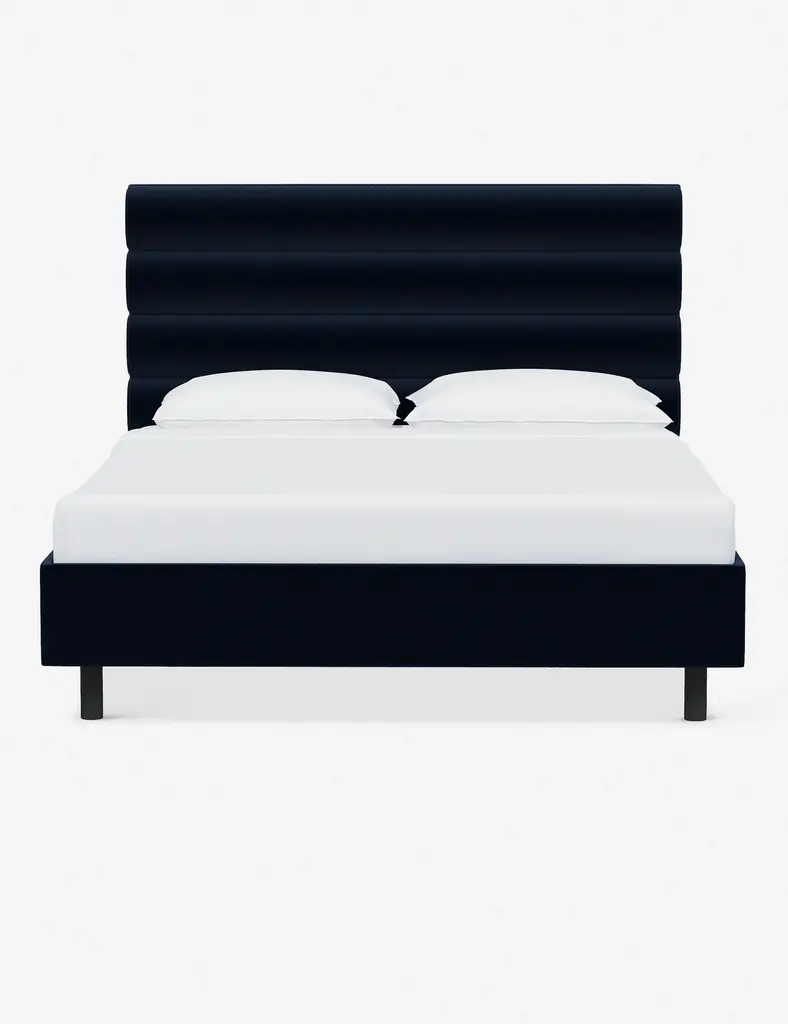 This platform bed features striking horizontal channel tufting along its headboard, adding clean visual texture to your bedroom wall. With its tailored lines, use this bed frame as the focal point in a collected bedroom aesthetic.