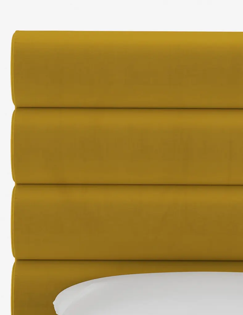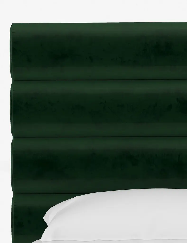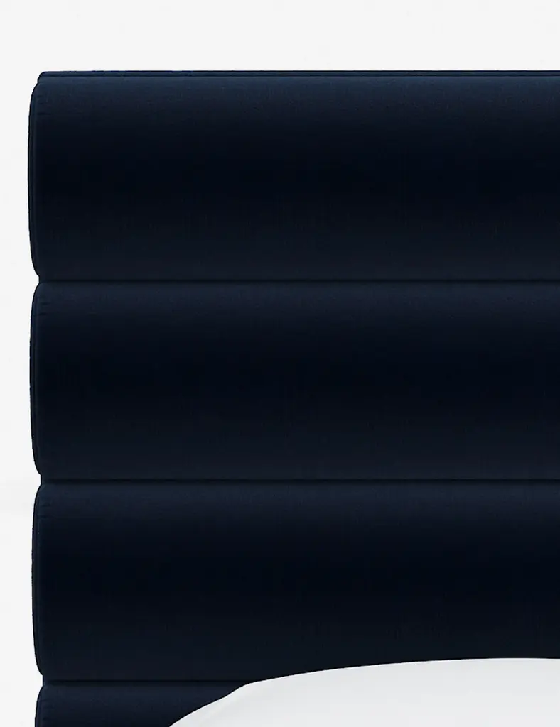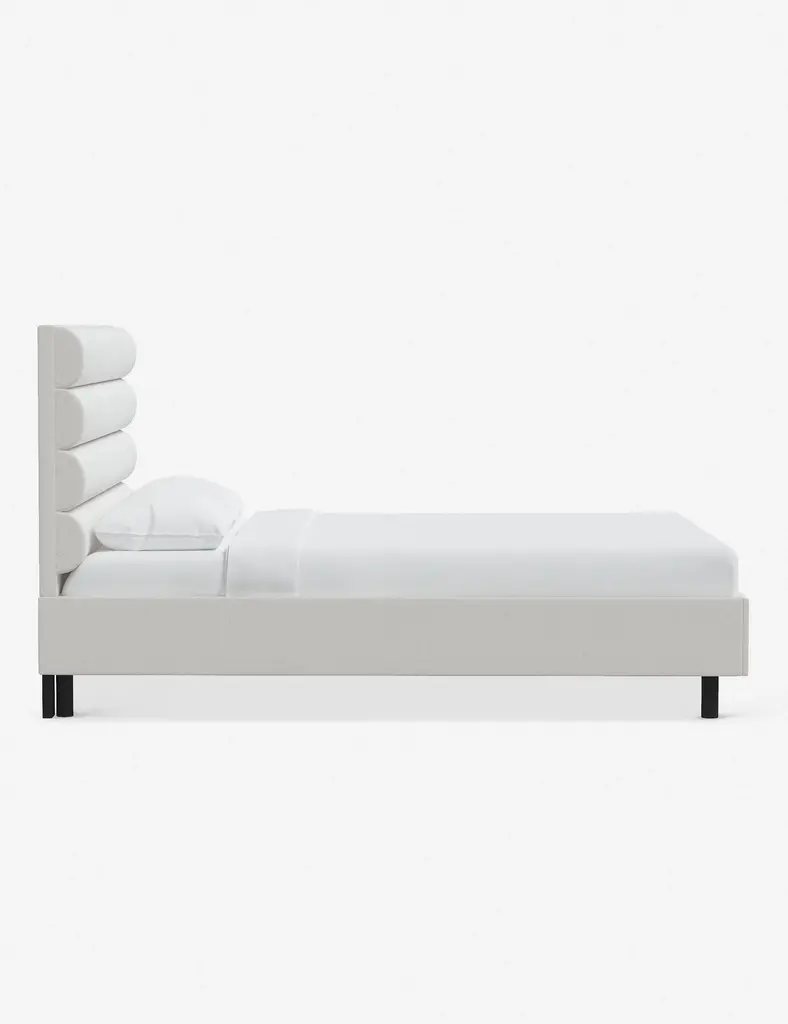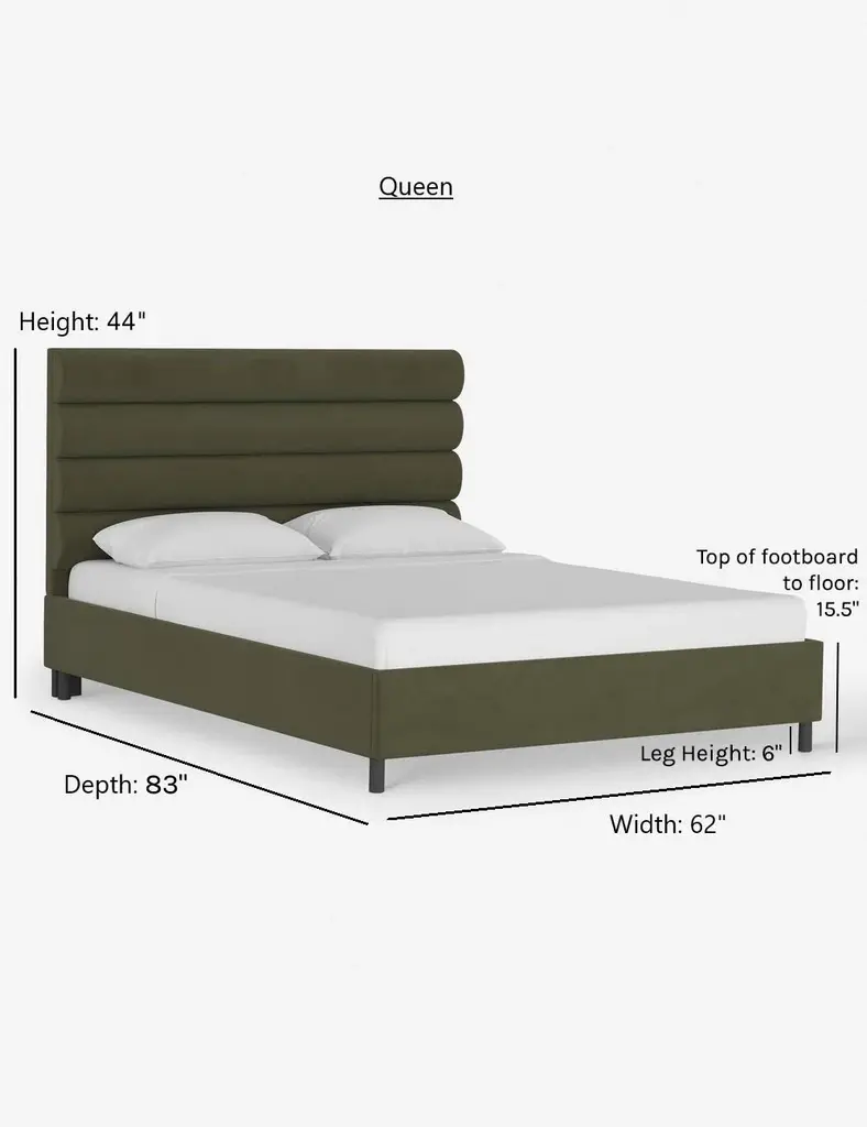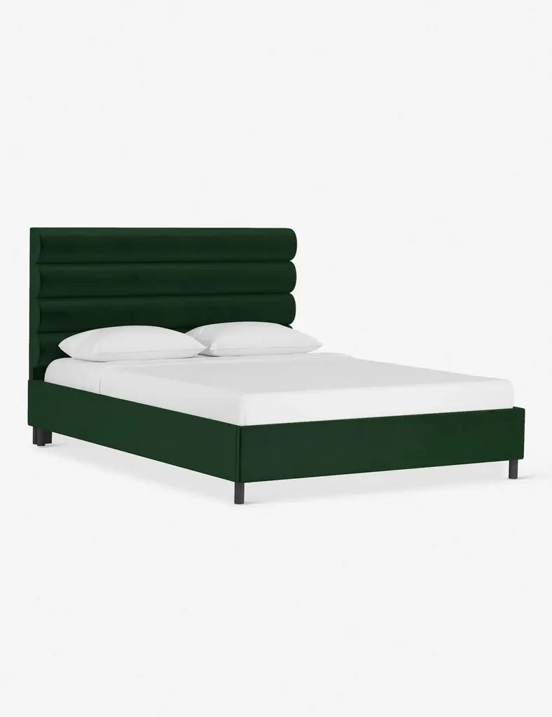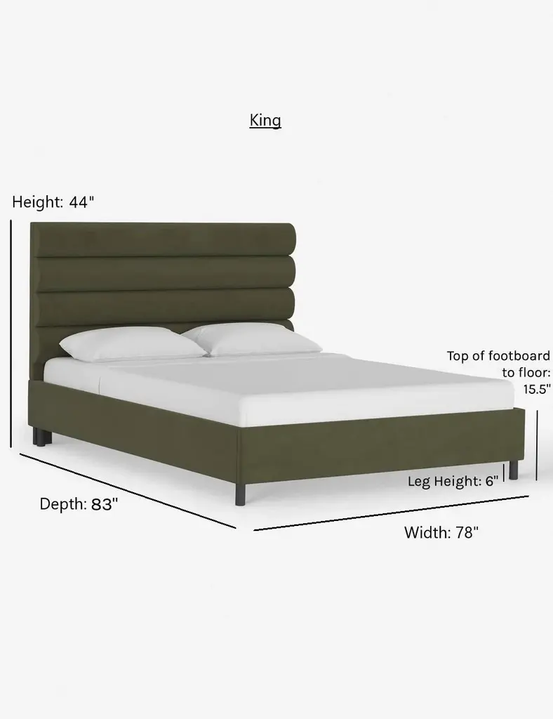 This platform bed features striking horizontal channel tufting along its headboard, adding clean visual texture to your bedroom wall. With its tailored lines, use this bed frame as the focal point in a collected bedroom aesthetic.