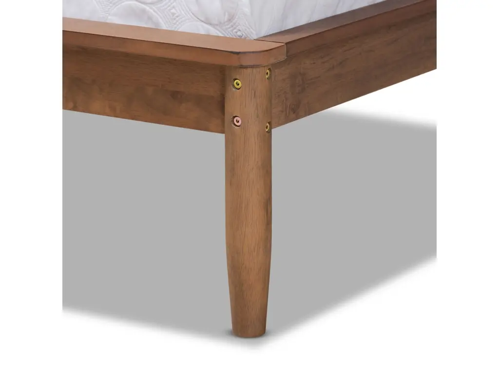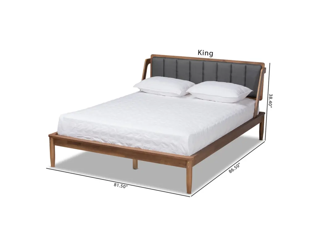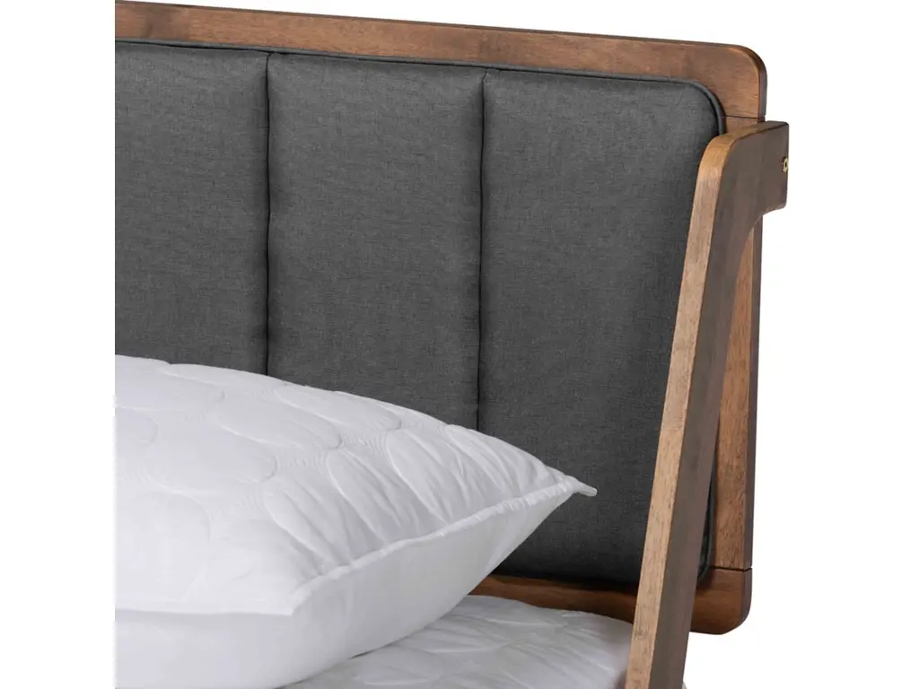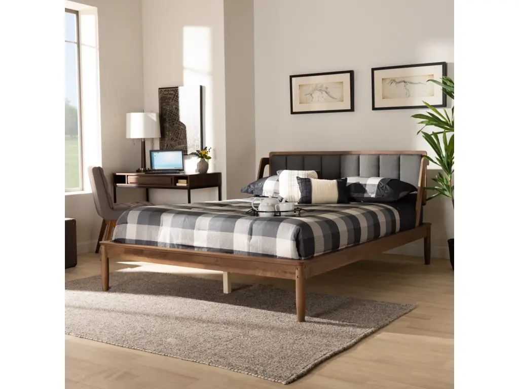 A wonderful combination of simplicity and comfort, the Helsa bed adds mid-century inspired design to any space. Made in Malaysia, the Helsa is constructed from sturdy wood finished in a neutral walnut brown to easily blend in with a large variety of room layouts and styles. The headboard is padded with soft foam and upholstered in smooth gray fabric for lavish support when sitting up in bed. Assembly is required and a box spring is not needed, as the bed comes with internal slats for mattress support. Plush channel tufting enhances the retro charm of the piece, making the Helsa bed a cozy and attractive addition to any bedroom.