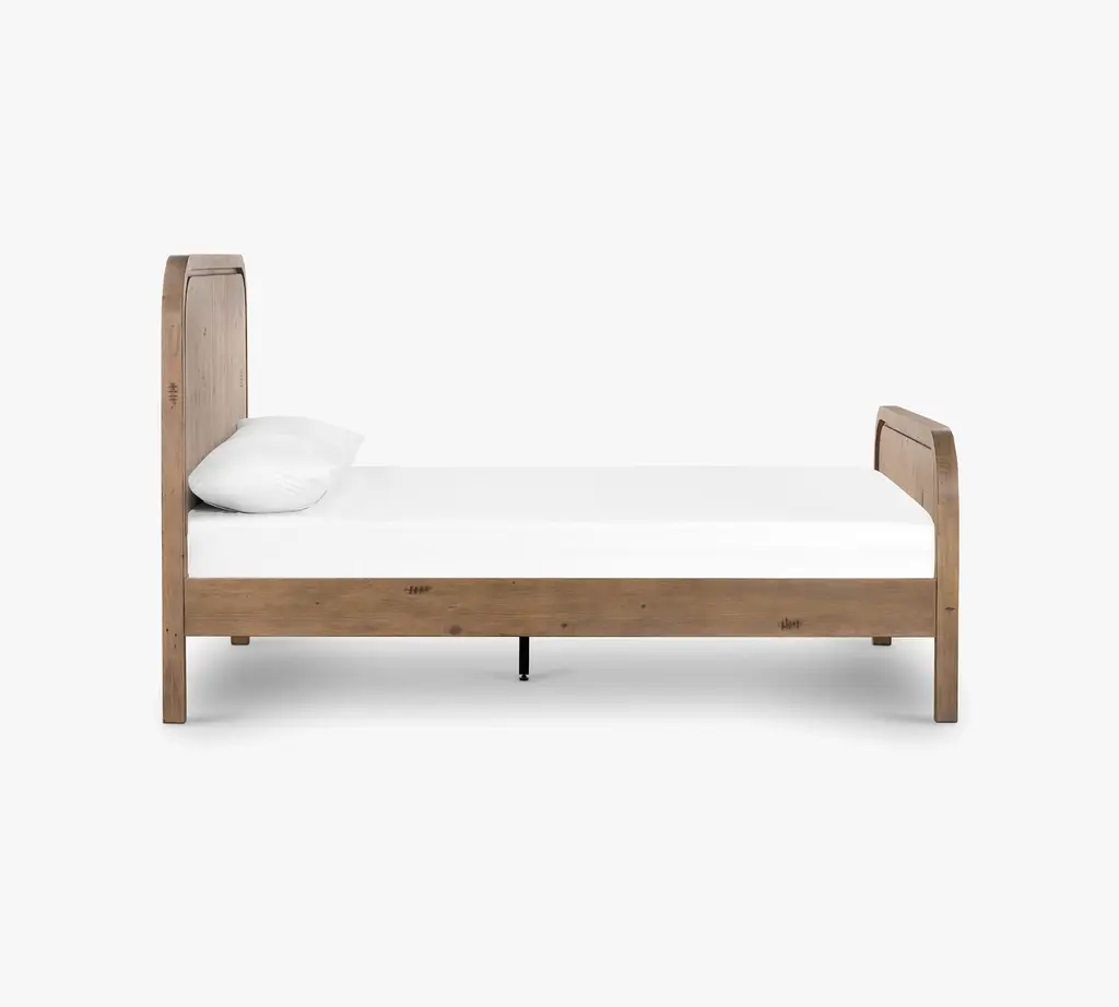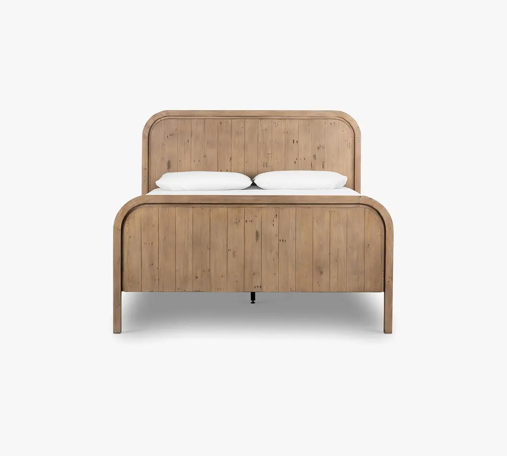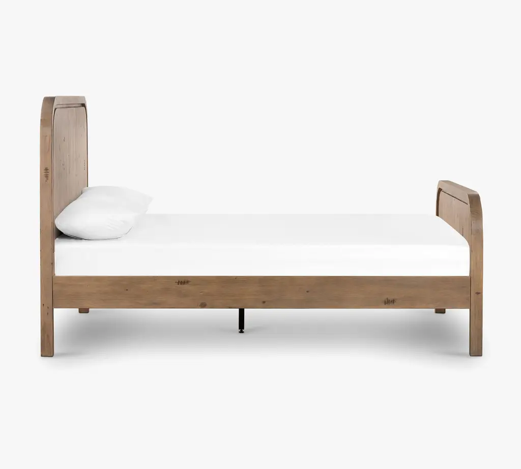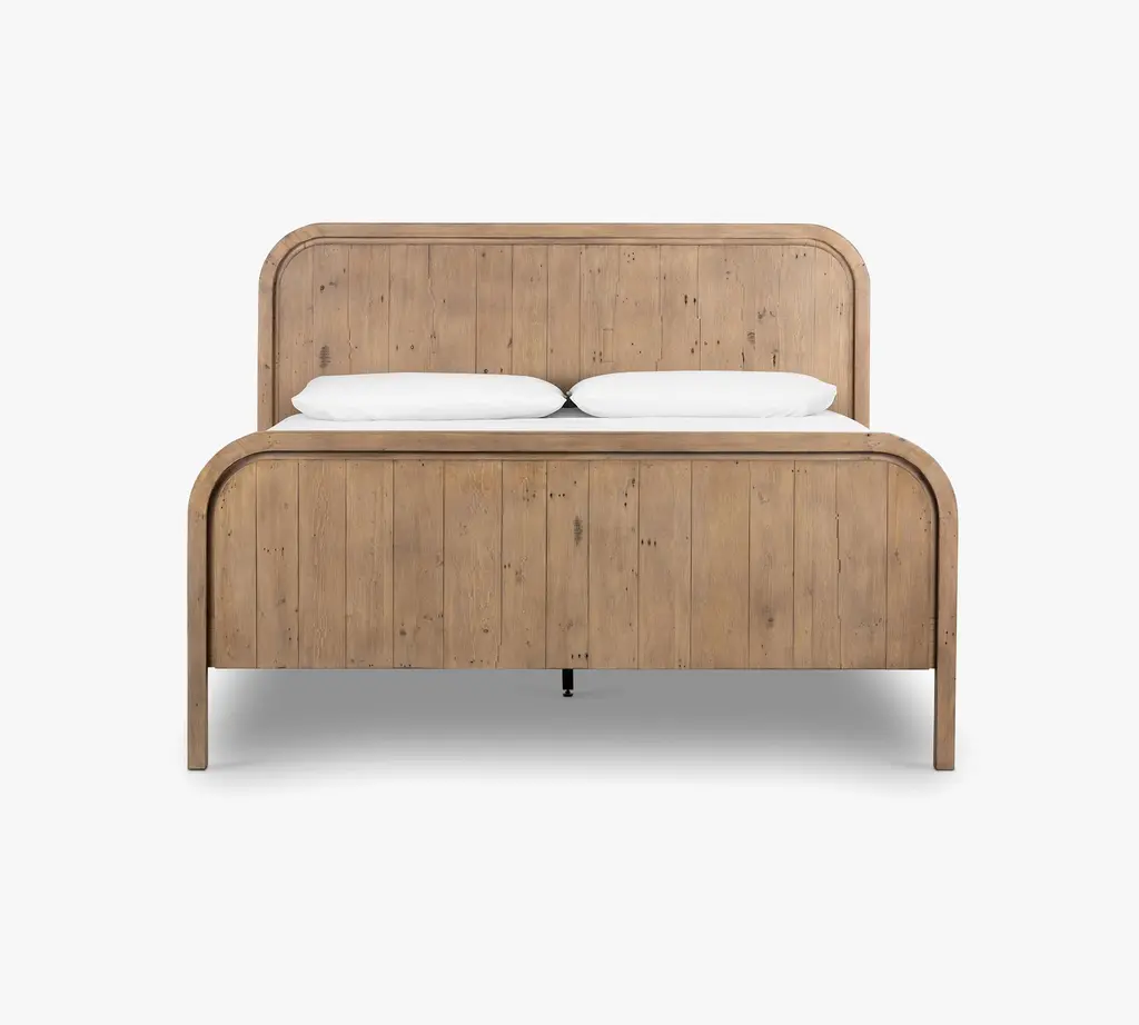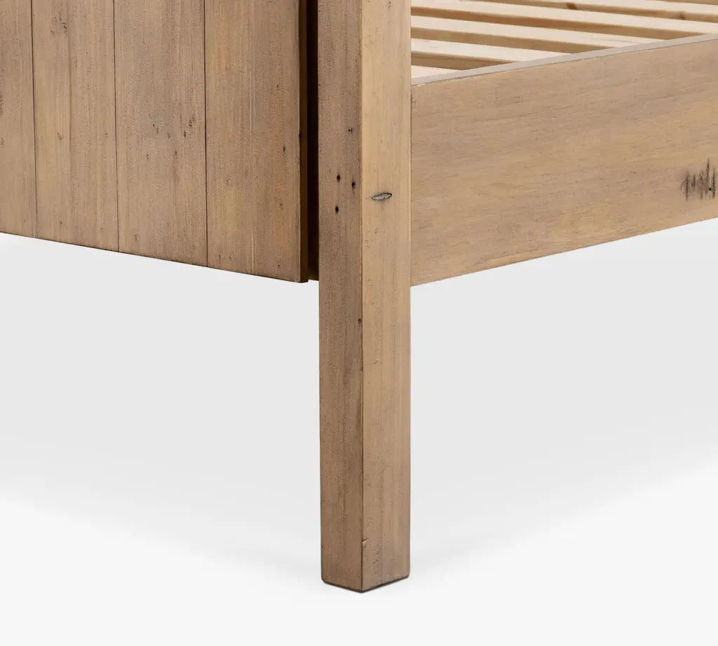 The low profile with rounded edges give this bed a coastal, modern feel. Each piece is unique and expertly crafted of reclaimed wood with a distressed finish, telling the story of its previous life through slight color variation and natural imperfections.