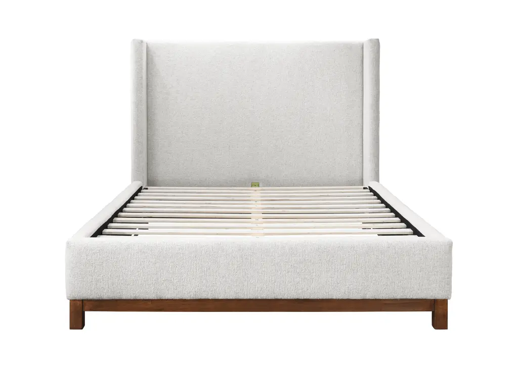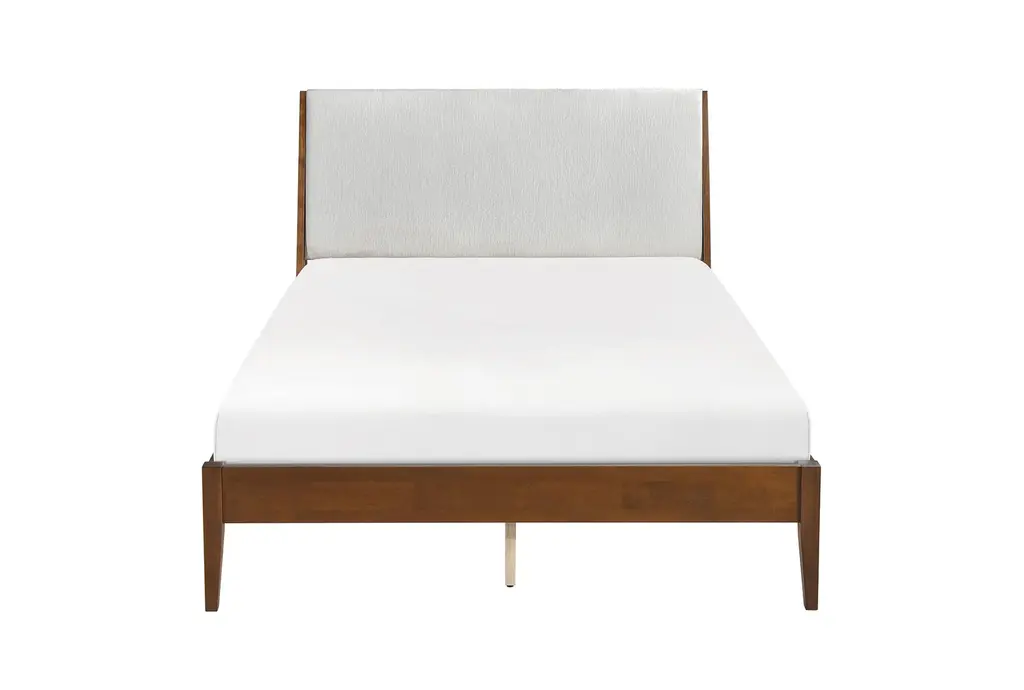 The Beverly Full Wood & Upholstered Platform Bed combines modern design with mid-century modern elements, creating a stylish and comfortable centerpiece for your bedroom. The light gray chenille fabric headboard adds a touch of softness, while the Asian hardwood frame ensures durability and stability. This bed includes a headboard, footboard, slats, and rails, making it a complete and convenient choice for your sleeping space.