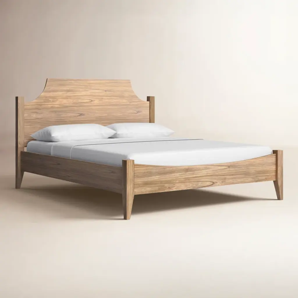 This platform bed borrows inspiration from the clean-lined shaker tradition. The wooden frame comes in a dynamic finish, and the headboard strikes a bold Portman silhouette with subtle posts and scooped edges. Slats support your preferred mattress, which is sold separately. Bonus: No box spring is needed.