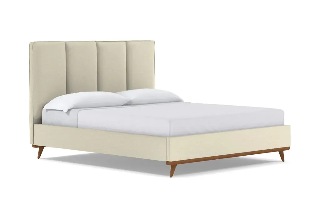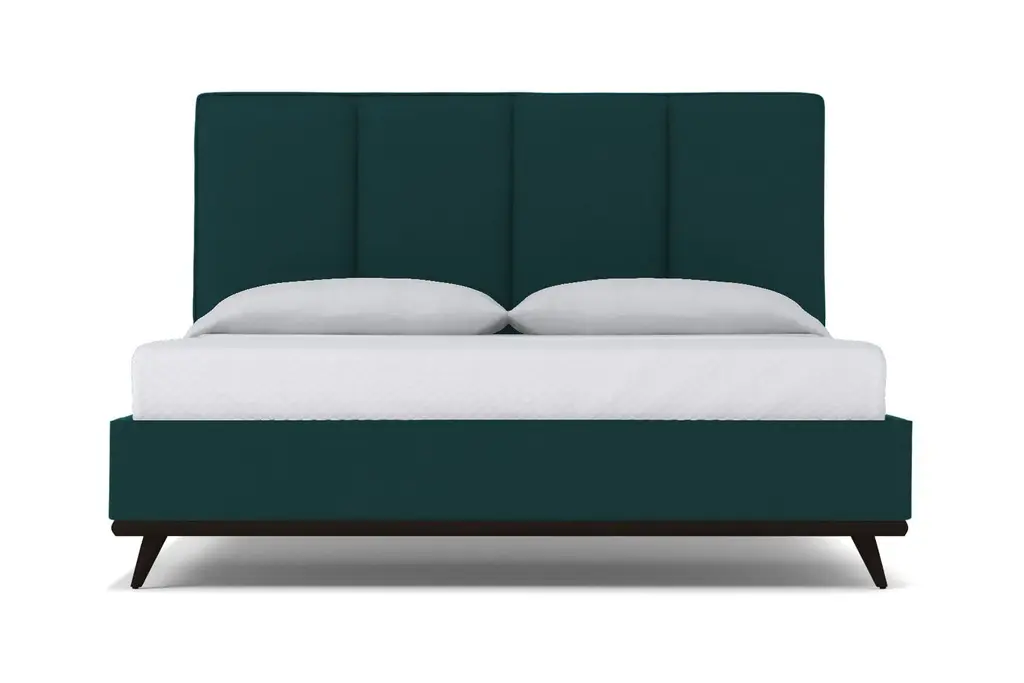 The Carter Upholstered Velvet Platform Bed Frame from Apt2B brings indulgent midcentury modern design into your bedroom. Choose from a variety of lush velvet hues to add a sumptuous feel to the clean lines and understated elegance of this eye-catching piece. We’ll even send you free swatches of our velvet options to help you decide which one complements your décor (and P.S., our velvets are kid- and pet-friendly!). Channel tufting is synonymous with contemporary luxury. The posh look of this tufted headboard goes to the next level as a velvet bed frame that surrounds you with welcoming softness. Angled 7.5-inch hardwood legs and an exposed hardwood base along the headboard and footboard add richness to the overall look. Custom made in our Los Angeles facility, the Carter Upholstered Velvet Platform Bed Frame features solid hardwood construction. This is a true platform bed that features hardwood slats, but it does require a bunkie board as additional mattress support. A box spring can also be used for a more traditional look. The velvet bed frame is fully upholstered for an exquisite look from any angle.