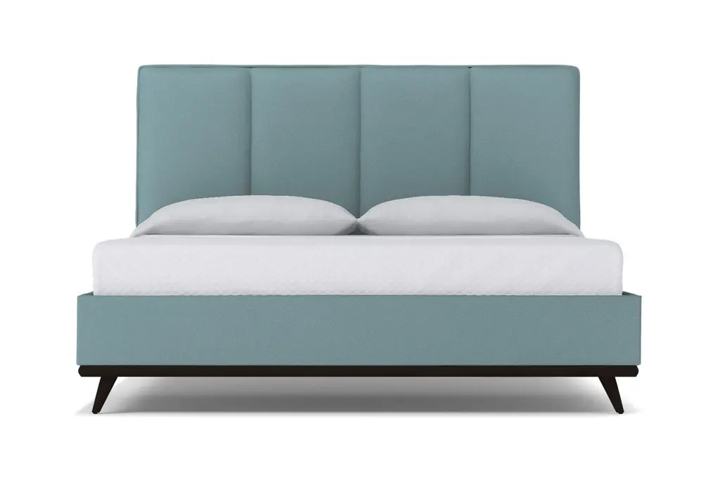 The Carter Upholstered Velvet Platform Bed Frame from Apt2B brings indulgent midcentury modern design into your bedroom. Choose from a variety of lush velvet hues to add a sumptuous feel to the clean lines and understated elegance of this eye-catching piece. We’ll even send you free swatches of our velvet options to help you decide which one complements your décor (and P.S., our velvets are kid- and pet-friendly!). Channel tufting is synonymous with contemporary luxury. The posh look of this tufted headboard goes to the next level as a velvet bed frame that surrounds you with welcoming softness. Angled 7.5-inch hardwood legs and an exposed hardwood base along the headboard and footboard add richness to the overall look. Custom made in our Los Angeles facility, the Carter Upholstered Velvet Platform Bed Frame features solid hardwood construction. This is a true platform bed that features hardwood slats, but it does require a bunkie board as additional mattress support. A box spring can also be used for a more traditional look. The velvet bed frame is fully upholstered for an exquisite look from any angle.