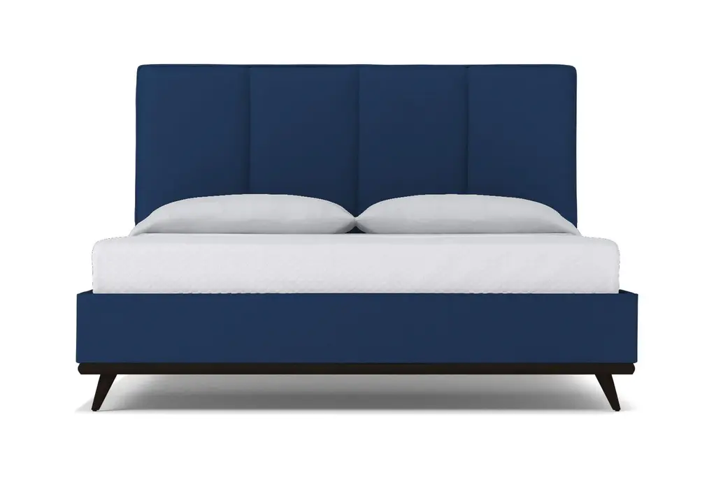 The Carter Upholstered Velvet Platform Bed Frame from Apt2B brings indulgent midcentury modern design into your bedroom. Choose from a variety of lush velvet hues to add a sumptuous feel to the clean lines and understated elegance of this eye-catching piece. We’ll even send you free swatches of our velvet options to help you decide which one complements your décor (and P.S., our velvets are kid- and pet-friendly!). Channel tufting is synonymous with contemporary luxury. The posh look of this tufted headboard goes to the next level as a velvet bed frame that surrounds you with welcoming softness. Angled 7.5-inch hardwood legs and an exposed hardwood base along the headboard and footboard add richness to the overall look. Custom made in our Los Angeles facility, the Carter Upholstered Velvet Platform Bed Frame features solid hardwood construction. This is a true platform bed that features hardwood slats, but it does require a bunkie board as additional mattress support. A box spring can also be used for a more traditional look. The velvet bed frame is fully upholstered for an exquisite look from any angle.