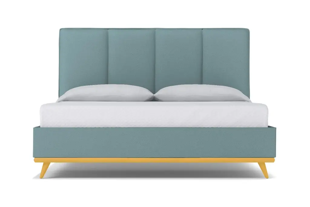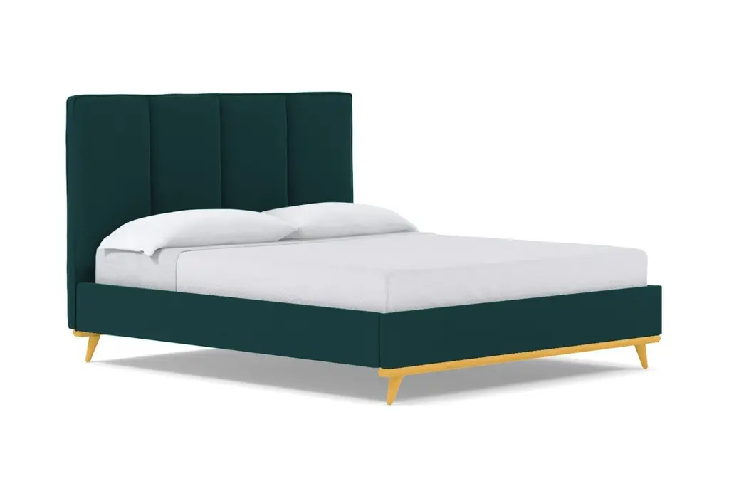 The Carter Upholstered Velvet Platform Bed Frame from Apt2B brings indulgent midcentury modern design into your bedroom. Choose from a variety of lush velvet hues to add a sumptuous feel to the clean lines and understated elegance of this eye-catching piece. We’ll even send you free swatches of our velvet options to help you decide which one complements your décor (and P.S., our velvets are kid- and pet-friendly!). Channel tufting is synonymous with contemporary luxury. The posh look of this tufted headboard goes to the next level as a velvet bed frame that surrounds you with welcoming softness. Angled 7.5-inch hardwood legs and an exposed hardwood base along the headboard and footboard add richness to the overall look. Custom made in our Los Angeles facility, the Carter Upholstered Velvet Platform Bed Frame features solid hardwood construction. This is a true platform bed that features hardwood slats, but it does require a bunkie board as additional mattress support. A box spring can also be used for a more traditional look. The velvet bed frame is fully upholstered for an exquisite look from any angle.