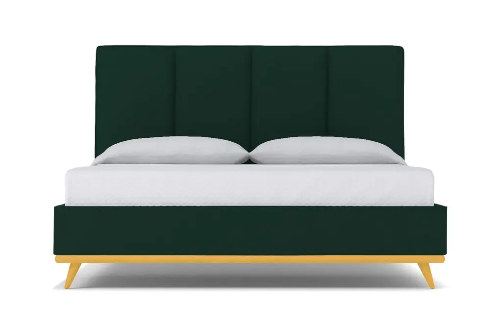 Carter Upholstered Velvet Platform Bed :: Leg Finish: Natural / Size: Queen Size