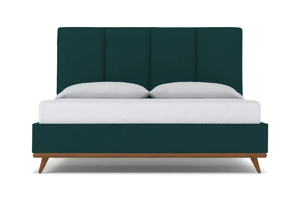 Carter Upholstered Velvet Platform Bed :: Leg Finish: Pecan / Size: King