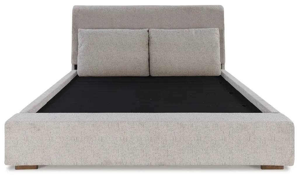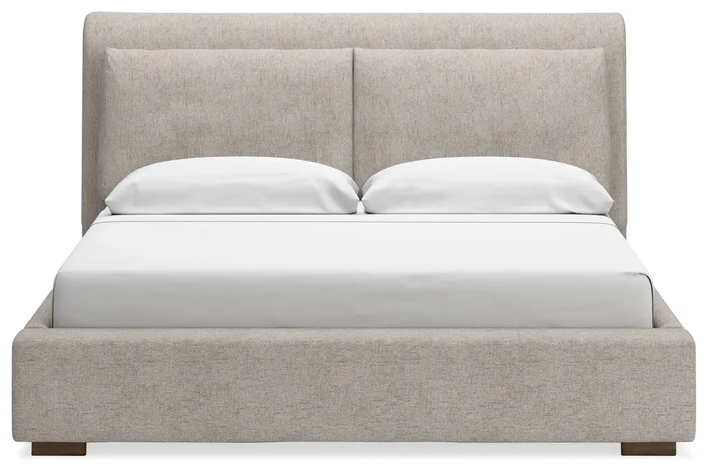 This king upholstered bed sits comfortably at the intersection of modern lodge and farmhouse aesthetics. Your warm and welcoming disposition is reflected in its subtly tapered headboard and all-over upholstery. Even with its poise, the bed remains practical. Loose pillows on the headboard keep comfort a priority as you lay back to read or watch TV, defining your bedroom with reliable function and style.