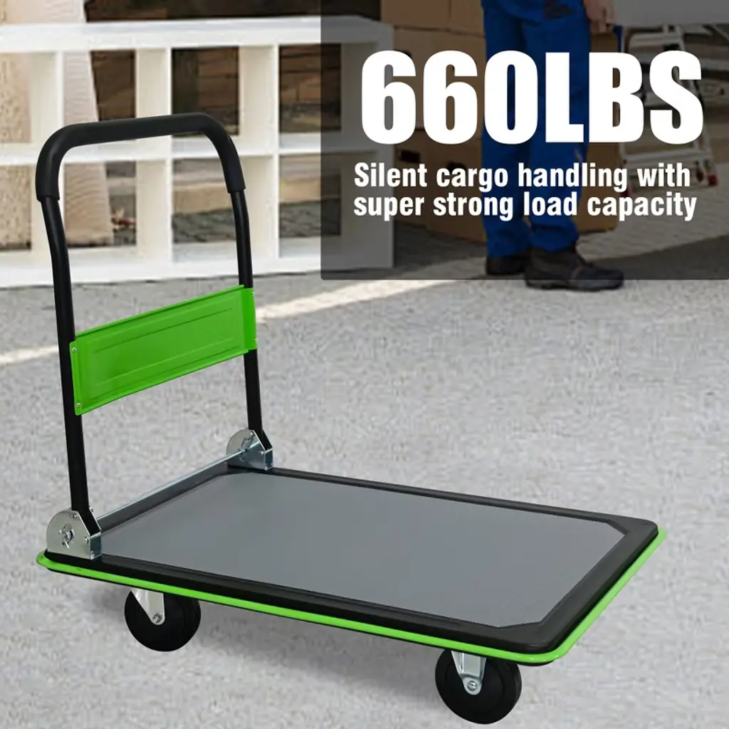 Cesicia Flatbed Cart, 660lbs Capacity Platform Hand Truck With 360 Degree Swivel Wheels, Foldable Push Hand Cart, Green