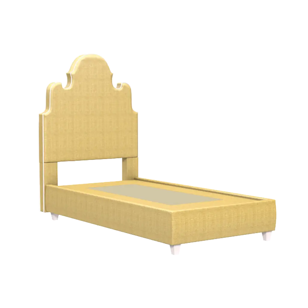 Twin: 43W x 78D x 70H, 2 yards Fabric Welt Queen: 65W x 83D x 70H, 2 yards Fabric Welt King: 81W x 83Dx 70H, 3 yards Fabric Welt The bed dreams are made of: The Charleston Platform Bed. So beautiful and elegant, you won't believe this is your bedroom! We love a platform bed for the way it always looks neat and tidy. Dress with the fussiest or simplest linen- it will be the most beautiful bedroom ever. No box spring necessary, the platform bed design only requires your choice of mattress. PLEASE NOTE - this is a natural material. There will be variances in shade and texture throughout. Knots and fly always are part of the nature of this material and gives Natural Raffia its beauty and character. Assembly is required. Made in America