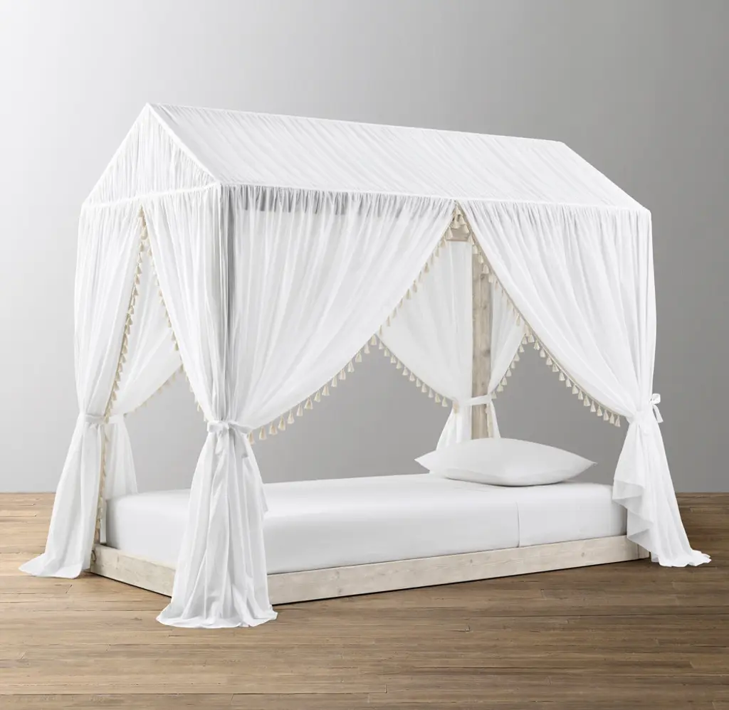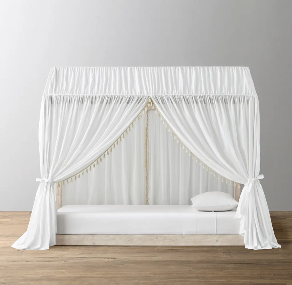 Cole House Platform Bed & Tassel Voile Canopy - Natural