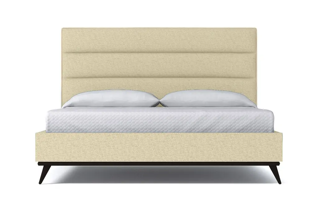 The Cooper Upholstered Platform Bed from Apt2B is an elegantly-crafted homage to Mid-Century Modern design with the benefits of modern and contemporary style. The Cooper Upholstered Platform Bed, designed by Apt2B resident designer Kyle Schuneman, features an eye-catching channel tufted headboard and a set of stylish, angled, hardwood legs. An exposed hardwood base along the footboard and the headboard highlights the craftsmanship and detailing on this exquisite fabric upholstered bed. This is a true platform bed that features hardwood slats, but it does require a bunkie board as additional mattress support. Your pets will also appreciate the 7.5"h legs, which provide plenty of room for exploration and afternoon naps. The Cooper is a fully upholstered fabric bed, which means it looks incredible from every angle. And, trust us, you will want to admire this bed from every angle.