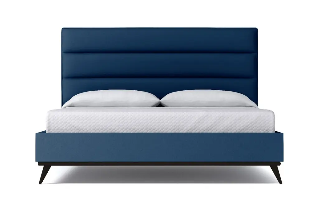 The Cooper Upholstered Platform Bed from Apt2B is an elegantly-crafted homage to Mid-Century Modern design with the benefits of modern and contemporary style. The Cooper Upholstered Platform Bed, designed by Apt2B resident designer Kyle Schuneman, features an eye-catching channel tufted headboard and a set of stylish, angled, hardwood legs. An exposed hardwood base along the footboard and the headboard highlights the craftsmanship and detailing on this exquisite fabric upholstered bed. This is a true platform bed that features hardwood slats, but it does require a bunkie board as additional mattress support. Your pets will also appreciate the 7.5"h legs, which provide plenty of room for exploration and afternoon naps. The Cooper is a fully upholstered fabric bed, which means it looks incredible from every angle. And, trust us, you will want to admire this bed from every angle.