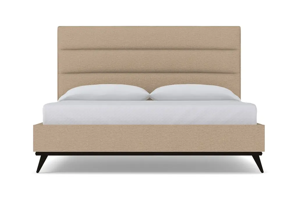 The Cooper Upholstered Platform Bed from Apt2B is an elegantly-crafted homage to Mid-Century Modern design with the benefits of modern and contemporary style. The Cooper Upholstered Platform Bed, designed by Apt2B resident designer Kyle Schuneman, features an eye-catching channel tufted headboard and a set of stylish, angled, hardwood legs. An exposed hardwood base along the footboard and the headboard highlights the craftsmanship and detailing on this exquisite fabric upholstered bed. This is a true platform bed that features hardwood slats, but it does require a bunkie board as additional mattress support. Your pets will also appreciate the 7.5"h legs, which provide plenty of room for exploration and afternoon naps. The Cooper is a fully upholstered fabric bed, which means it looks incredible from every angle. And, trust us, you will want to admire this bed from every angle.