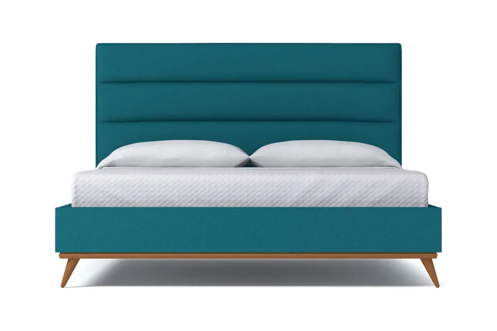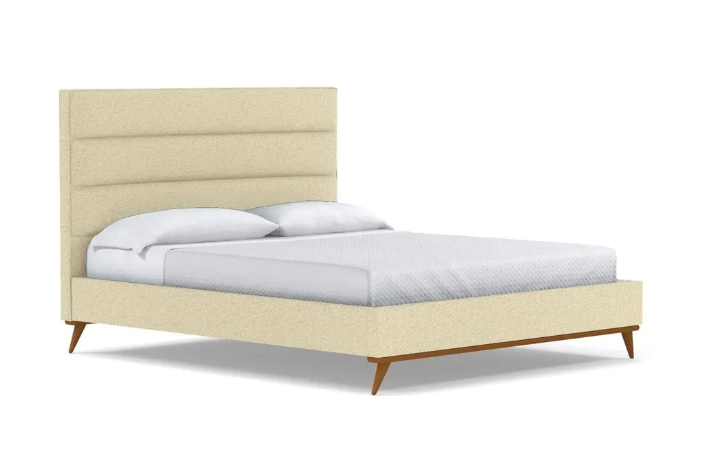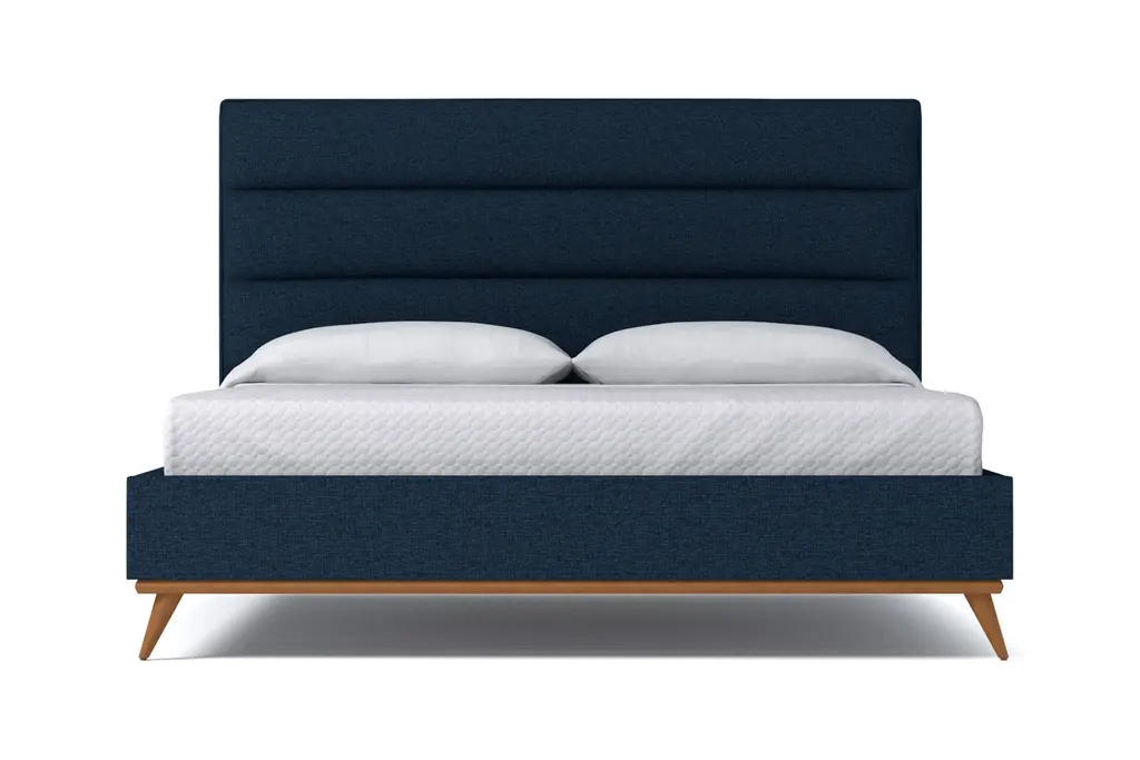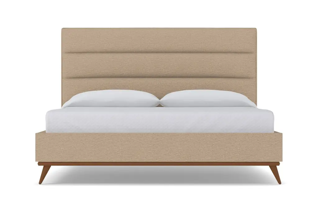 The Cooper Upholstered Platform Bed from Apt2B is an elegantly-crafted homage to Mid-Century Modern design with the benefits of modern and contemporary style. The Cooper Upholstered Platform Bed, designed by Apt2B resident designer Kyle Schuneman, features an eye-catching channel tufted headboard and a set of stylish, angled, hardwood legs. An exposed hardwood base along the footboard and the headboard highlights the craftsmanship and detailing on this exquisite fabric upholstered bed. This is a true platform bed that features hardwood slats, but it does require a bunkie board as additional mattress support. Your pets will also appreciate the 7.5"h legs, which provide plenty of room for exploration and afternoon naps. The Cooper is a fully upholstered fabric bed, which means it looks incredible from every angle. And, trust us, you will want to admire this bed from every angle.