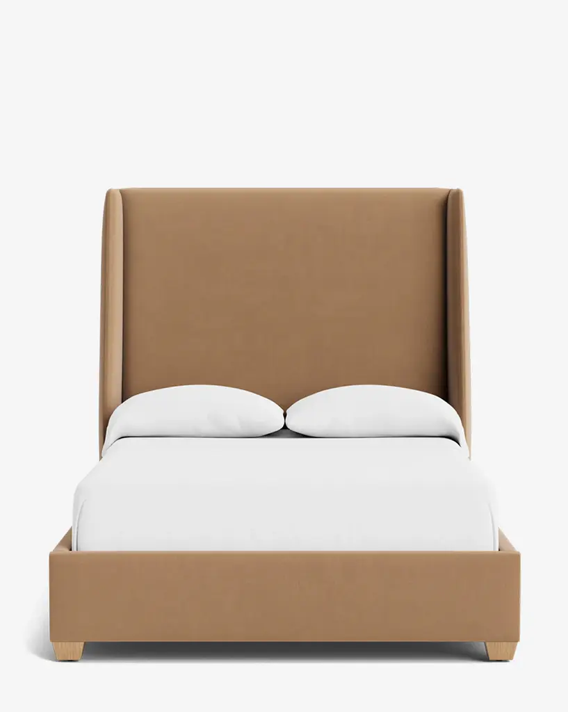 The Copenhagen Fabric Shelter Bed is fluid and sculptural, combining organic minimalism with sumptuous comfort. Appearing to float atop a wooden plinth base, its low profile captures a sense of tailored restraint while its sheltering headboard offers an embrace. The generously upholstered silhouette is at once relaxed and refined.SHOP THE FRESHBED™ SLEEP SYSTEMSHOP ALL MATTRESSES
