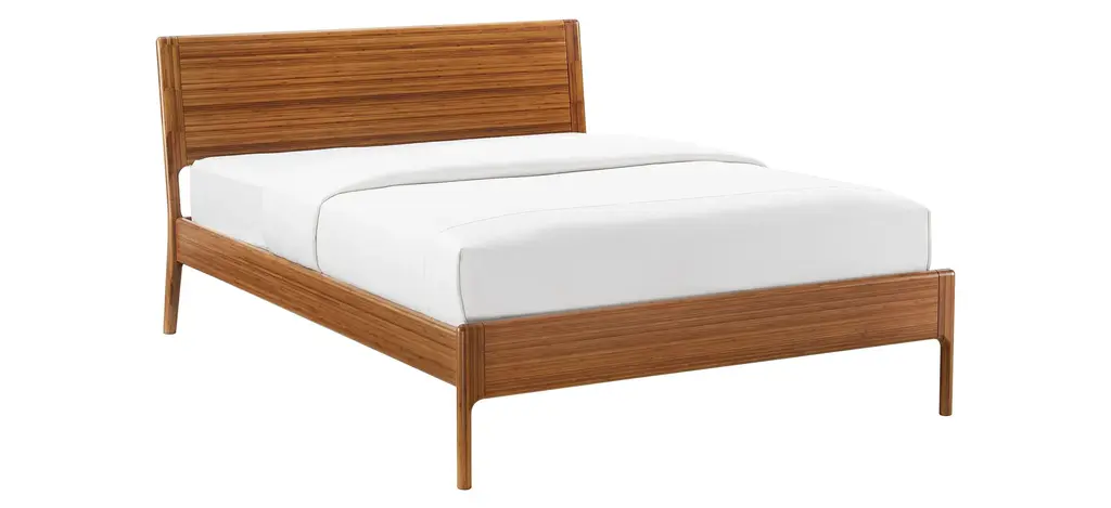 Bringing peace and relaxation. The Currant Platform Bed from Greenington has a Scandinavian-inspired design that includes everything you need to create a tranquil oasis in your bedroom. The distinctive style of the headboard highlights the natural beauty of the wood grain, which will have slight variations to signal its quality. The wood construction is Moso bamboo, which is an extremely eco-friendly and renewable resource that’s also 20% stronger than red oak. The bed frame as a slat system that eliminates the need for a box spring.