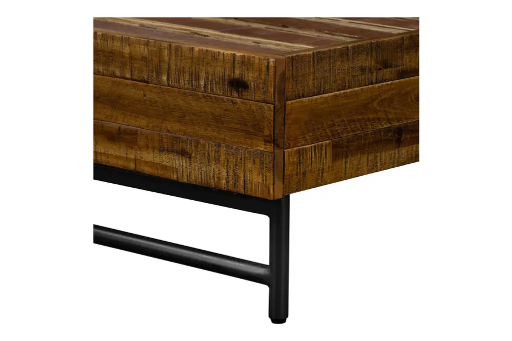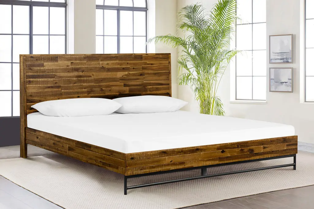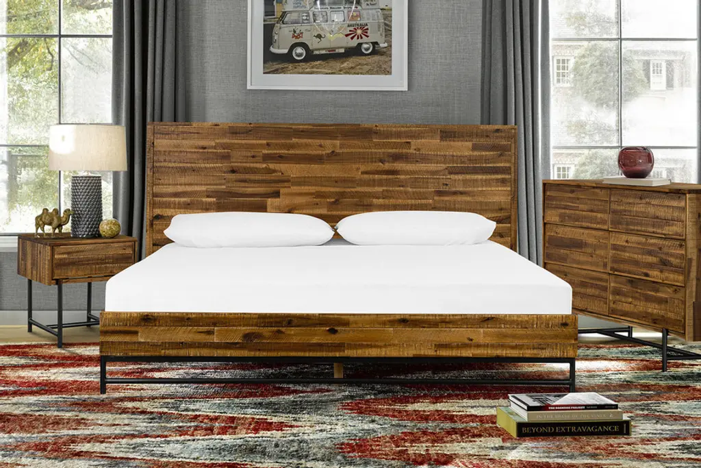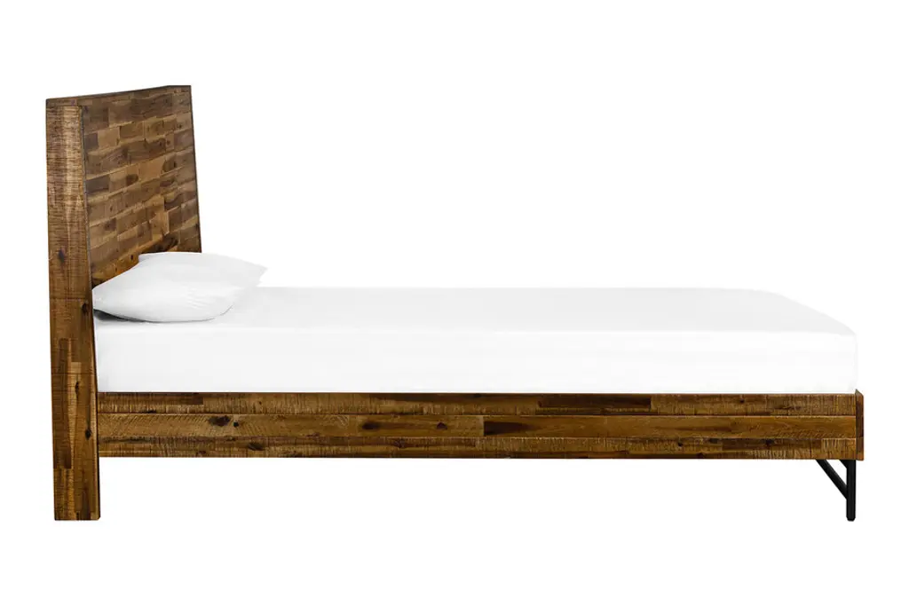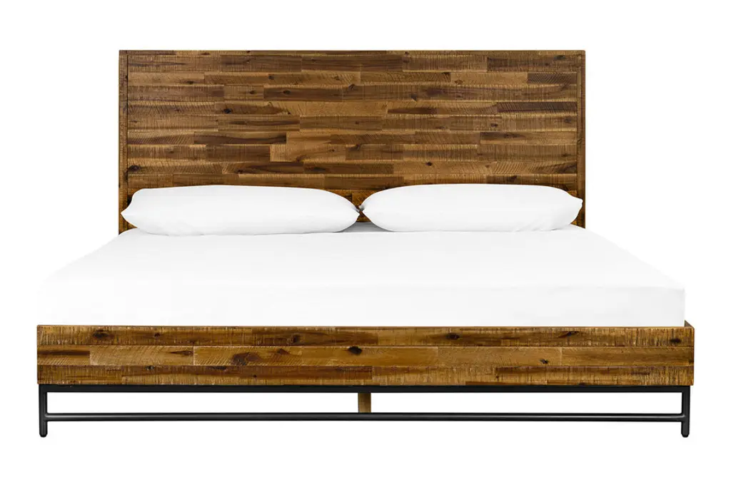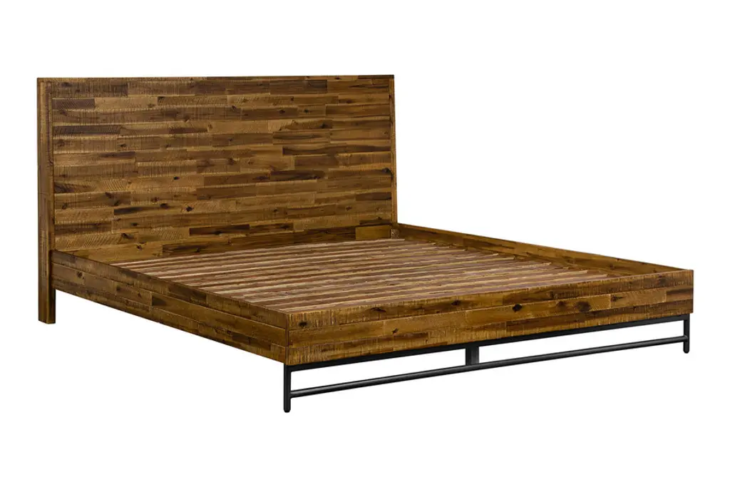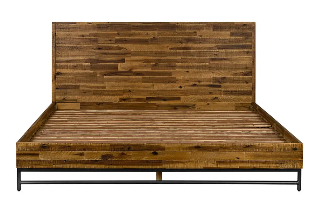 Perfect for bedrooms and guest roomsStrong black metal frameCrafted from solid acacia wood with an antique finishNo box spring requiredMatches with other items of the Cusco Bedroom Collection & Cusco Dining Collection (sold seperately)