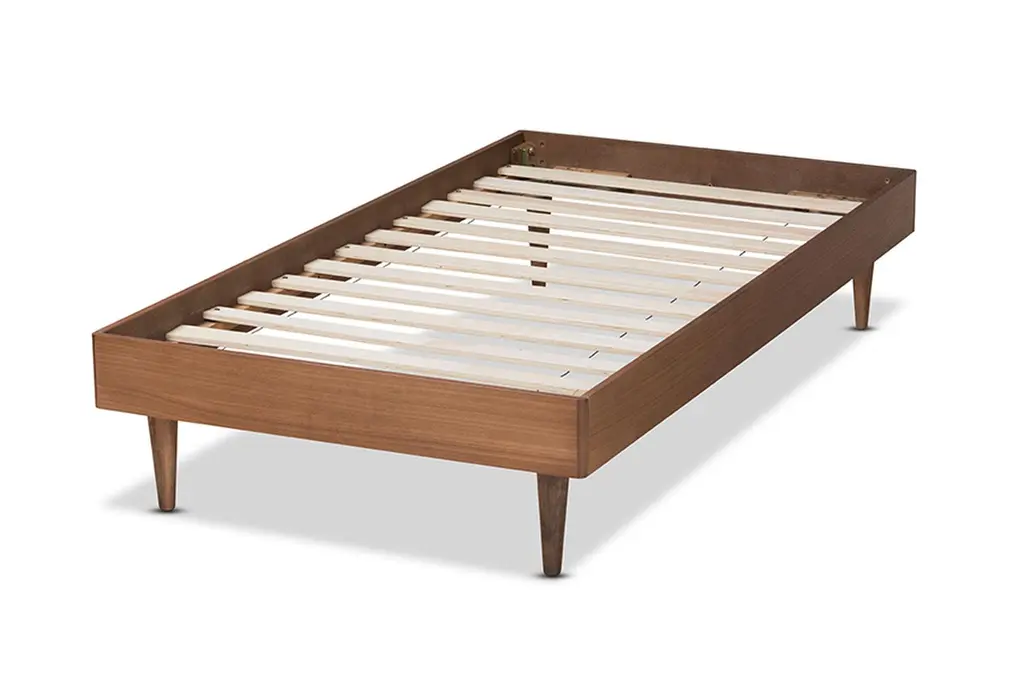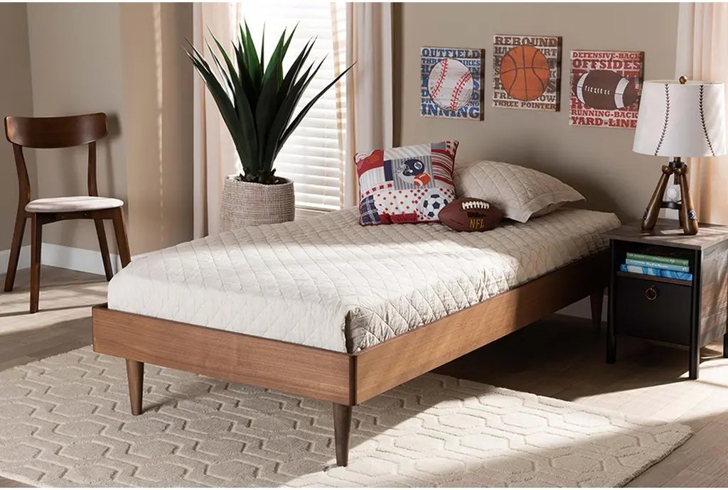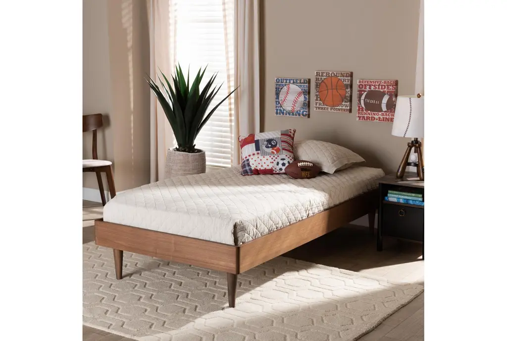 Devynn Twin Brown Ash Walnut Finish Wood Platform Bed
