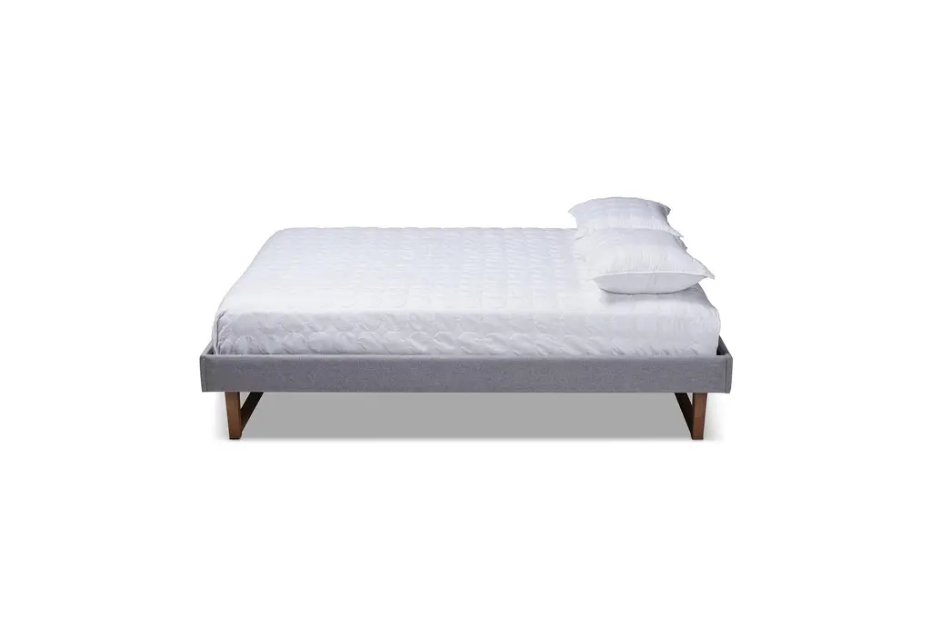 Dextyr Full Light Grey Fabric Upholstered Walnut Brown Finish Wood Platform Bed