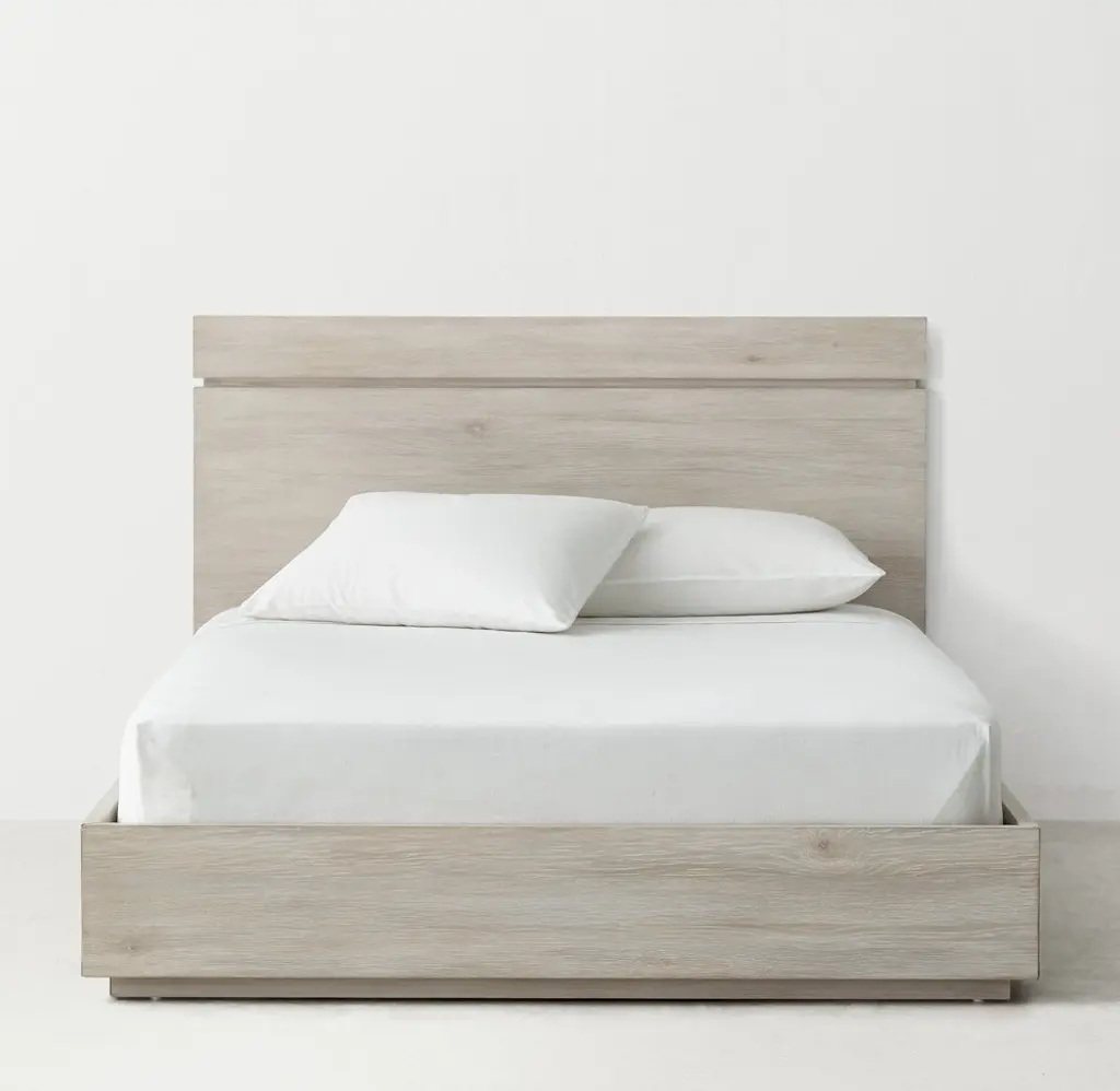 Inspired by the pared-down profiles of 1950s Modernism, our collection is characterized by clean lines and crisp angles. A slender horizontal channel cuts across the headboard – a restrained detail in keeping with the minimalist design. Crafted of knotty white oak, the rich grain imparts an organic feel that softens the structured silhouettes. GREENGUARD Gold Certified. Meets or exceeds stringent chemical emissions standards. Learn more. SHOP THE ENTIRE COLLECTION
