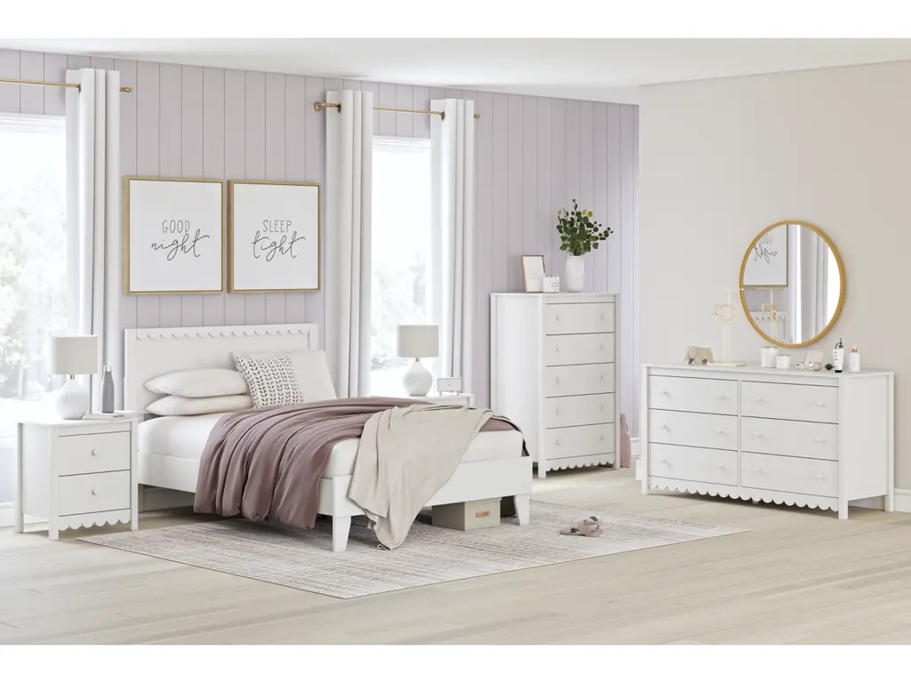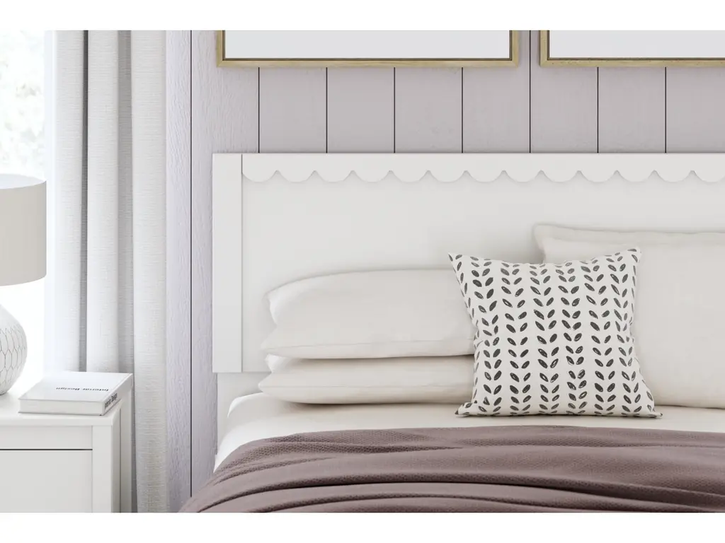 Thanks to its playful scalloped design, the Hallityn full platform bed is the perfect fit for cottage or coastal farmhouse interiors. Its matte white finish serves as the perfect backdrop to showcase your personal taste and creativity. Plus the low-profile bed frame fits right in with your minimalist sensibility.