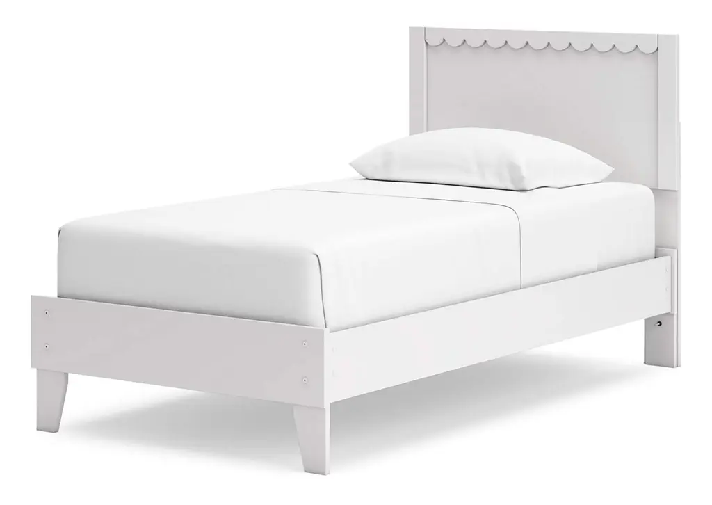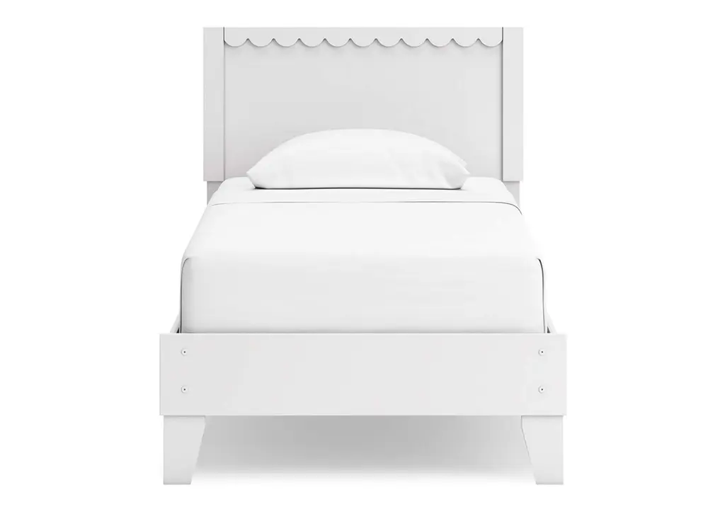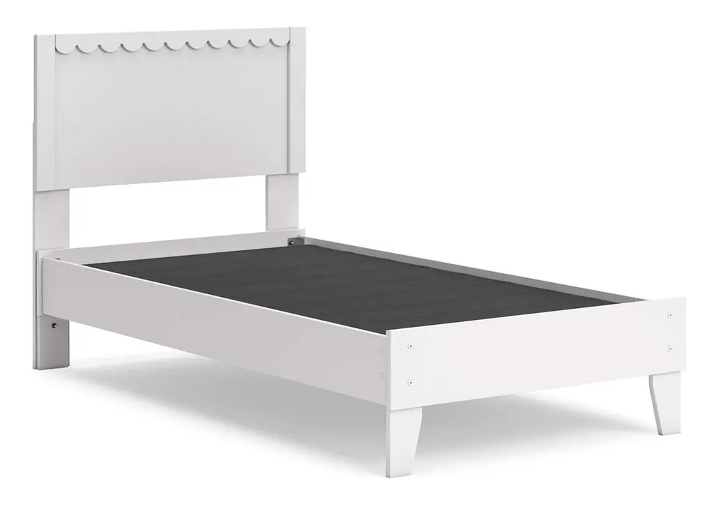 Thanks to its playful scalloped design, the Hallityn twin platform bed is the perfect fit for cottage or coastal farmhouse interiors. Its matte white finish serves as the perfect backdrop to showcase your personal taste and creativity. Plus the low-profile bed frame fits right in with your minimalist sensibility. Weight 95.000 lbs. (42.75kgs.)