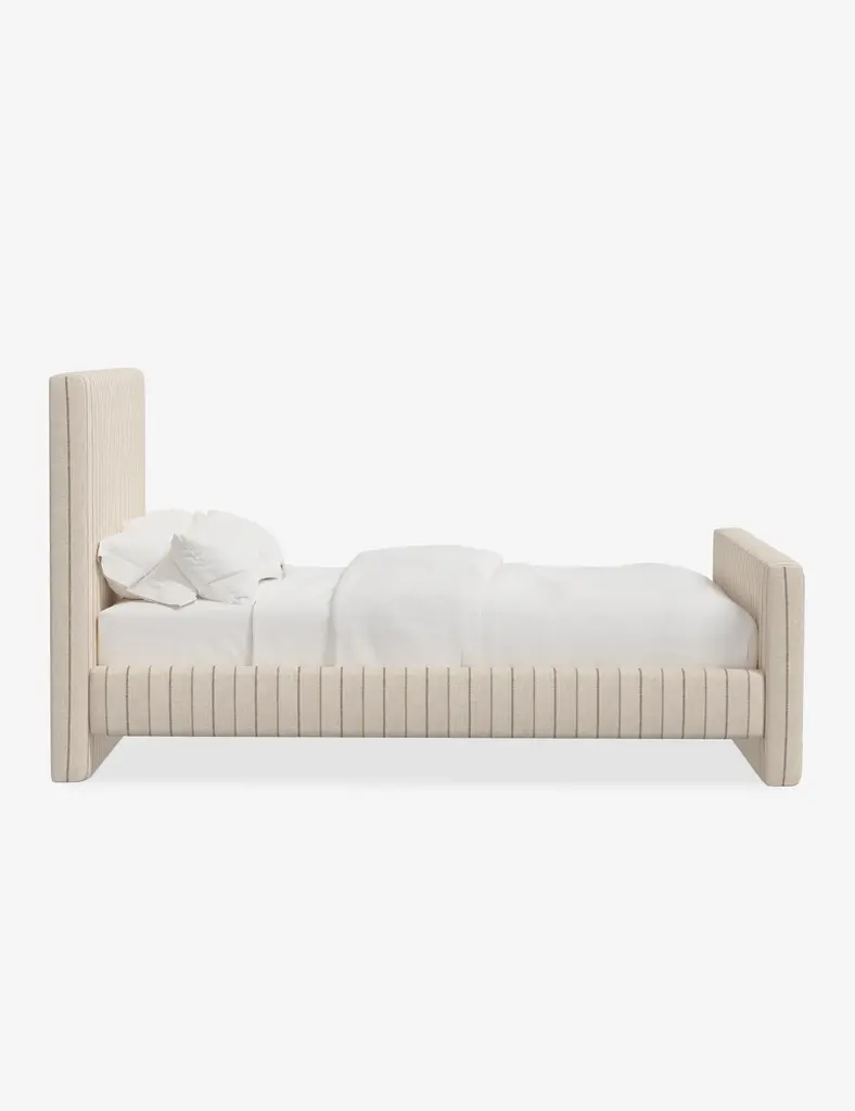 The Halloway bed brings a clean-lined elegance to your bedroom edit. The headboard and footboard echo each other with a linear profile softened by allover upholstery that continues on the bed frame. A beautiful selection of bespoke fabrics lets you style the look to suit.