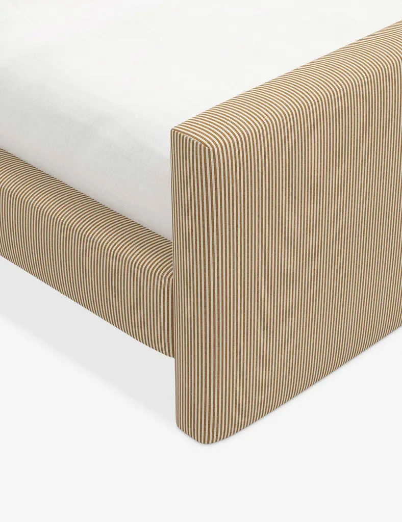 The Halloway bed brings a clean-lined elegance to your bedroom edit. The headboard and footboard echo each other with a linear profile softened by allover upholstery that continues on the bed frame. A beautiful selection of bespoke fabrics lets you style the look to suit.