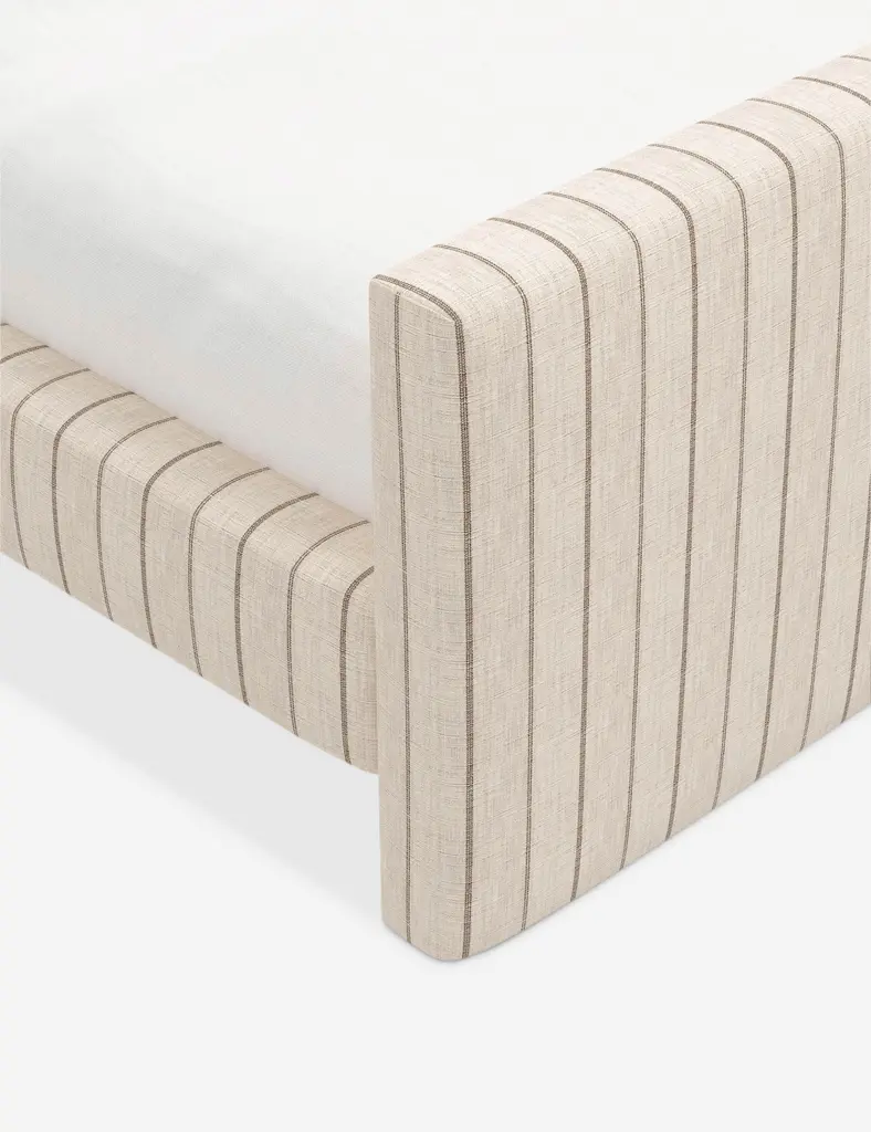 The Halloway bed brings a clean-lined elegance to your bedroom edit. The headboard and footboard echo each other with a linear profile softened by allover upholstery that continues on the bed frame. A beautiful selection of bespoke fabrics lets you style the look to suit.