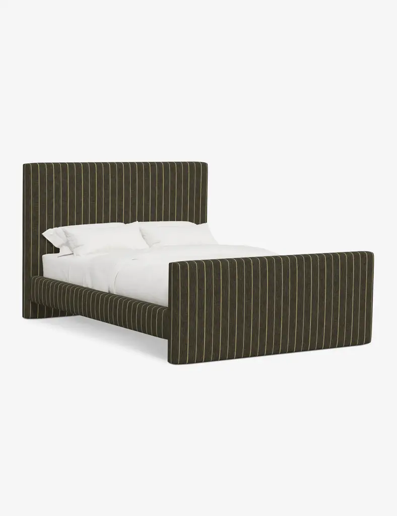 The Halloway bed brings a clean-lined elegance to your bedroom edit. The headboard and footboard echo each other with a linear profile softened by allover upholstery that continues on the bed frame. A beautiful selection of bespoke fabrics lets you style the look to suit.